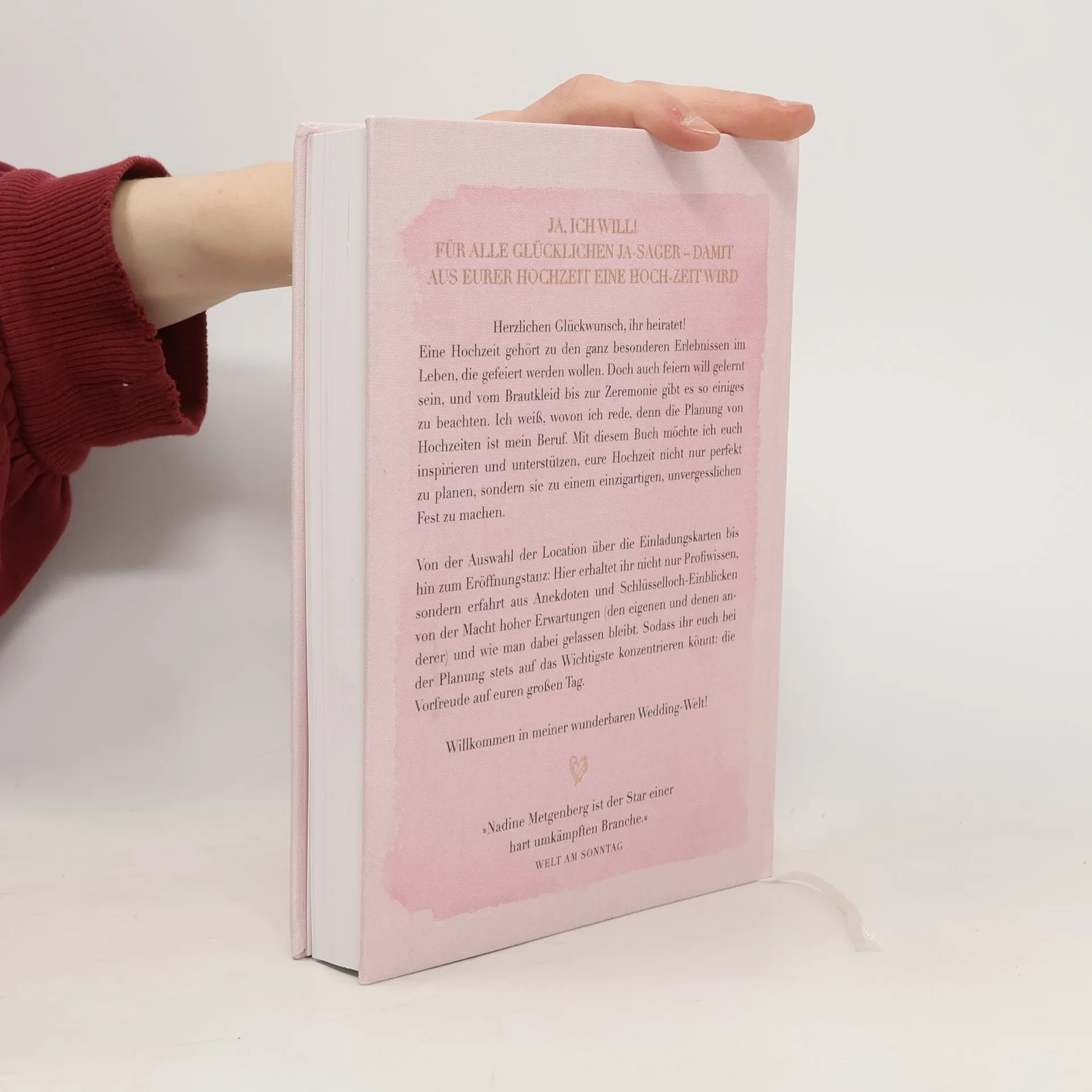 Eine Hochzeit ist immer so perfekt wie ihre Planung – und so gut wie das Team, das sich hinter den Kulissen um alles kümmert. Niemand weiß dies so gut wie Nadine Metgenberg, Gründerin von Fine Weddings & Parties. Mit ihrer Hochzeits- und Eventagentur hat sich die Hamburgerin auf Premium-Hochzeiten und Feierlichkeiten im In- und Ausland spezialisiert. Menschen mit Träumen und Visionen sind bei ihr richtig. Kunden dürfen nahezu alles von ihr erwarten, nur keine Panikattacken oder Organisationsstress. Ihr Credo: »Concentrate on your dress, not the stress.« Die Wedding-Plannerin organisiert Mithilfe eines international verzweigten Netzwerks an Dienstleistern nicht nur Locations, Bands, Brautkleider oder Blumenarrangements. Nadine Metgenberg lässt Träume wahrwerden, hat selbst für kleinere und größere Katastrophen stets einen Plan B und ruht erst, wenn das Brautpaar Richtung Flitternacht entschwebt. Wie ihr das alles gelingt, erzählt sie in diesem Buch. Spannend, unterhaltsam und mit Humor gibt sie ihre Erfahrungen, Tipps und Tricks weiter. Ein Hochzeitscountdown der besonderen Art! » Grandios. Ein Hochzeits-Countdown der besonderen Art: tolle Ratschläge und Ideen auf 256 Seiten für den schönsten Tag in Ihrem Leben! « neues für die Frau