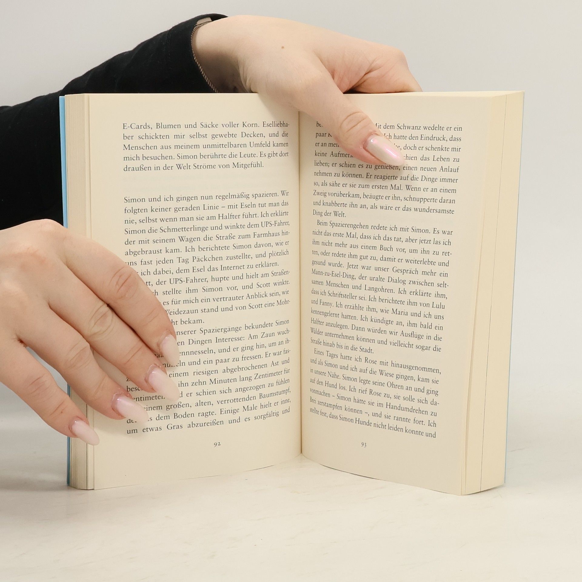 Die berührende Geschichte einer außergewöhnlichen Freundschaft Als Jon und der kleine Esel Simon sich zum ersten Mal begegnen, ist das von seinen Besitzern vernachlässigte Tier ausgehungert und schwach. Der Esel berührt etwas ganz tief in Jons Innerem, und er beschließt, Simon auf seine Farm zu holen und wieder gesund zu pflegen. Jon füttert den Esel mit den großen braunen Augen geduldig mit der Hand, geht mit ihm spazieren und liest ihm vor – und bald erzählt er ihm auch von seinen eigenen Sorgen und Nöten, ganz wie einem guten Freund. Allmählich gelingt es Jon, Simon wieder ins Leben zurückzuholen. Durch die Zeit mit dem kleinen Esel wird ihm klar, was Mitgefühl wirklich bedeutet: dass es unser Leben verändern und uns den Mut geben kann, Risiken einzugehen. Das Buch enthält viele bewegende Schwarz-Weiß-Fotografien.