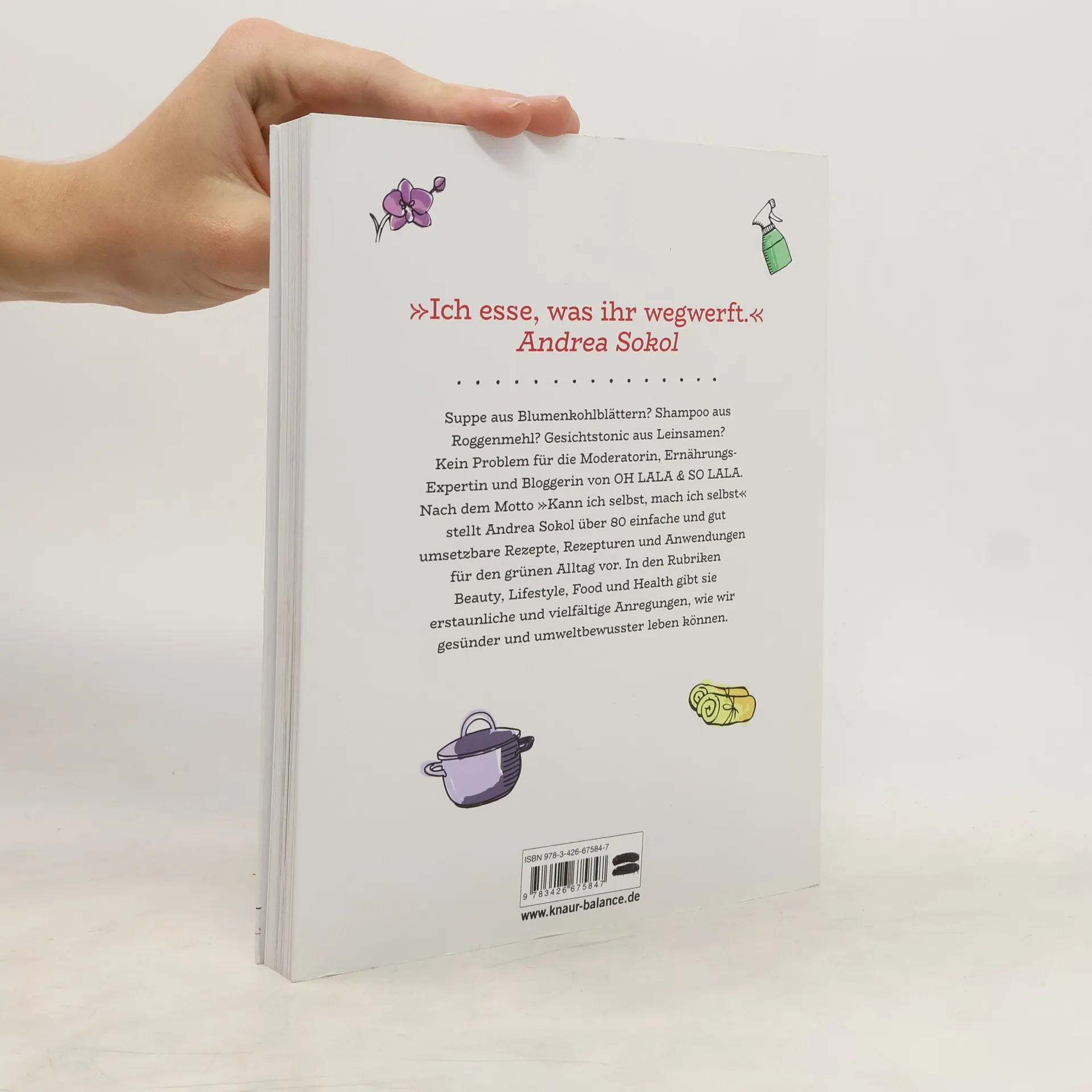 Der praktische Zero-Waste-Guide von Andrea Sokol bietet über 80 Rezepte und Anleitungen für eine gesunde, abfallfreie Lebensweise. Als Moderatorin, Coach und Bloggerin auf ihrem YouTube-Channel Ohlala & Solala setzt sie sich für Nachhaltigkeit ein und möchte Menschen inspirieren, umweltbewusster zu leben. Ihr Motto „Kann ich selbst. Mach ich selbst“ spiegelt sich in den einfachen, umsetzbaren Rezepten wider, die für den „grünen Alltag“ konzipiert sind. Mit ihrem Wissen als Ernährungsberaterin und Pflanzenkundlerin erklärt sie die Wirkungsweise von Inhaltsstoffen in Lebensmitteln und deren vielseitige Anwendung. So zeigt sie beispielsweise, wie man aus Kastanien Shampoo, aus Rosenwasser ein Gesichtstonic oder aus Blumenkohlblättern eine Suppe herstellen kann. Neben innovativen Food-Rezepten, die auf „Resten“ basieren, teilt sie auch ihre Geheimtipps für handgemachte Kosmetikprodukte. Darüber hinaus bietet sie praktische Tipps zu Beauty, Wellness, Gesundheit und Lifestyle. Ihr Ansatz fördert nicht nur das Bewusstsein für Nachhaltigkeit, sondern ermutigt auch dazu, die eigene Wertschätzung durch selbstgemachte Produkte zu steigern. Hand made Quality wird hier großgeschrieben.