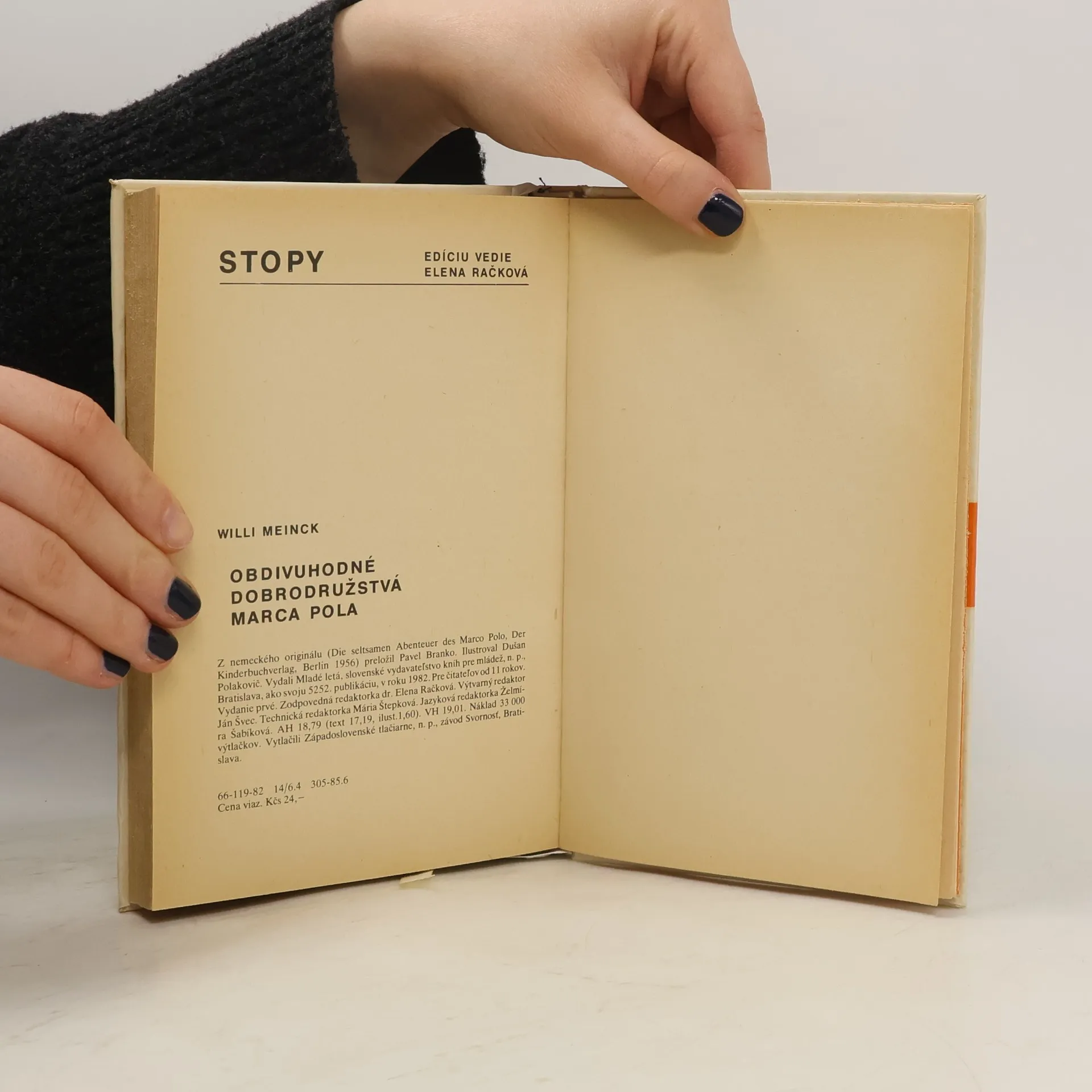 V bohatých a prekvitajúcich Benátkach vyrastá chlapec bez otca - Marco Polo. Často túžobne hľadí na more a tajne sníva o ďalekých plavbách plných dobrodružstiev, o cestách do neznámych exotických krajín. Čo mu hrozí a ako sa napokon predsa dostane na more, o tom hovorí táto krásna, citlivonapísaná kniha.