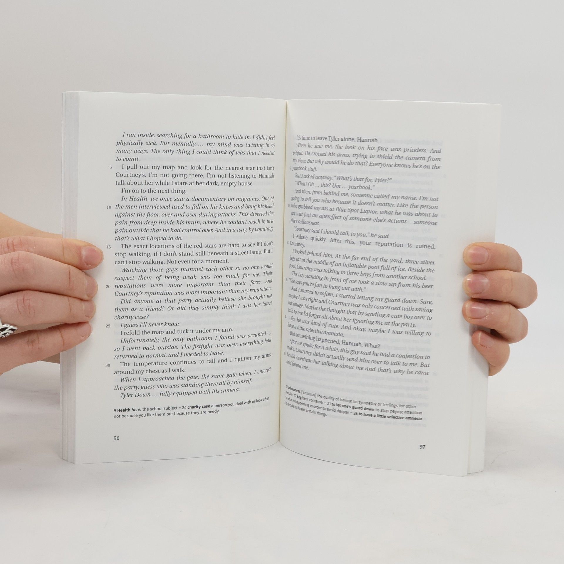 This is the story of teenager Hannah Baker, who sends tapes to the people who are connected to the thirteen reasons why she commits suicide. A story about friendship, despair and the responsibility we have for our actions and how they influence other people. A story which shows us how important it is to prevent a classmate from becoming a loner. In Hannah's own words: "No one knows for certain how much impact they have on the lives of other people. Oftentimes we have no clue."