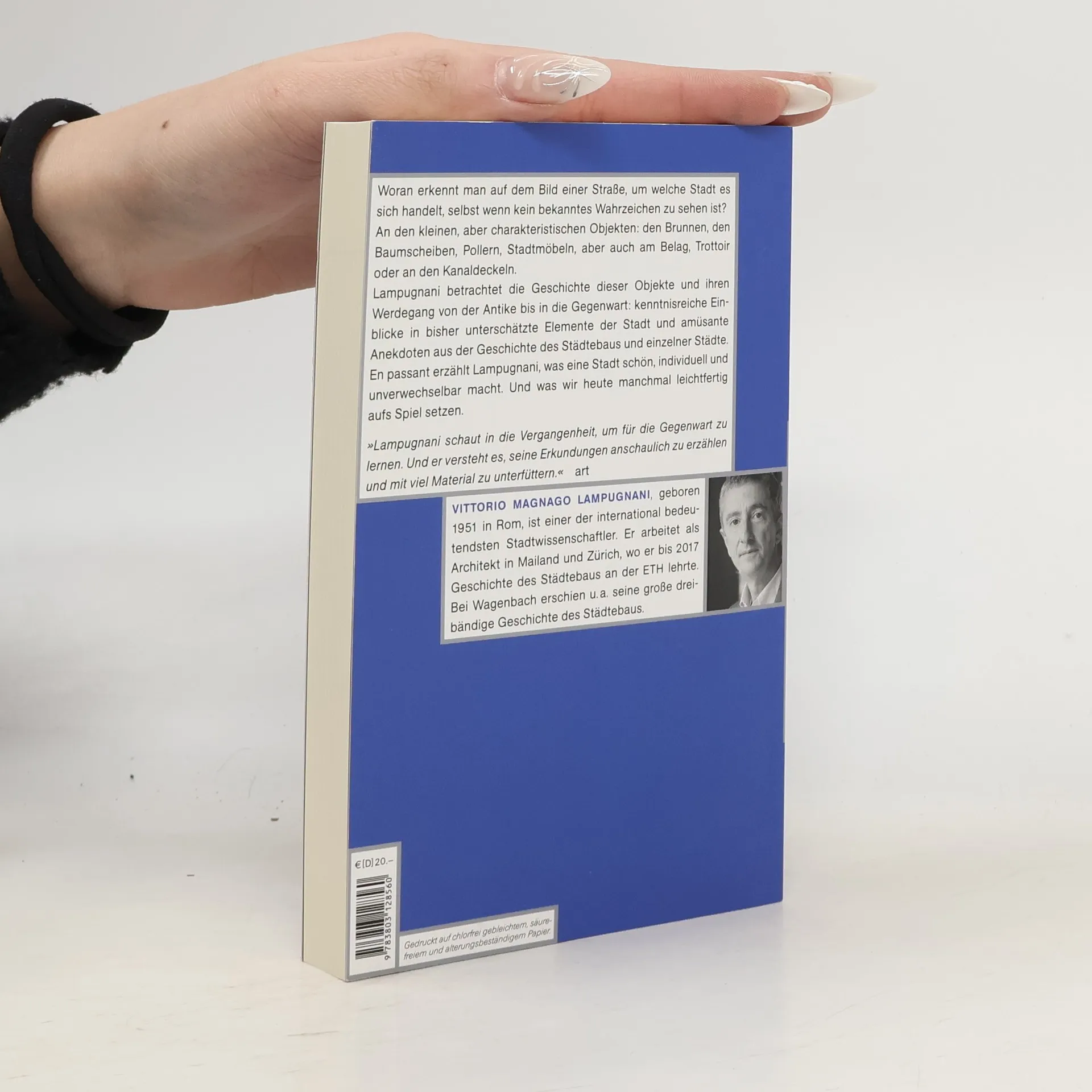Woran erkennt man auf dem Bild einer Straße, um welche Stadt es sich handelt, auch wenn kein bekanntes Wahrzeichen zu sehen ist? An den kleinen, aber charakteristischen Objekten: den Brunnen (Berliner Pumpen, Römische Nasone-Brunnen, Pariser Wallace-Brunnen), den Baumscheiben, Pollern, Stadtmöbeln, aber auch am Belag, Trottoir oder den Kanaldeckeln. Lampugnani betrachtet die Geschichte dieser Objekte, hat 22 repräsentative herausgesucht und erzählt ihren Werdegang: beginnend mit ihrem ersten Auftreten (oft schon in der Antike), ihrer Vernachlässigung (meist im Mittelalter), ihrer neuen Blüte oder ihrem erstmaligen Erscheinen (in der Stadt der Neuzeit) bis hin zu ihrer Verlotterung und Verhässlichung in der Gegenwart. Was entsteht, sind nicht nur kenntnisreiche Einblicke in bisher unterschätzte Elemente der Stadt und amüsante Anekdoten aus der Geschichte des Städtebaus und einzelner Städte. En passant erzählt Lampugnani auch, was eine Stadt schön, individuell und unverwechselbar macht. Und was wir heute manchmal leichtfertig aufs Spiel setzen. Für die Taschenbuchausgabe wurde der Text umfassend überarbeitet, erweitert und neu bebildert.