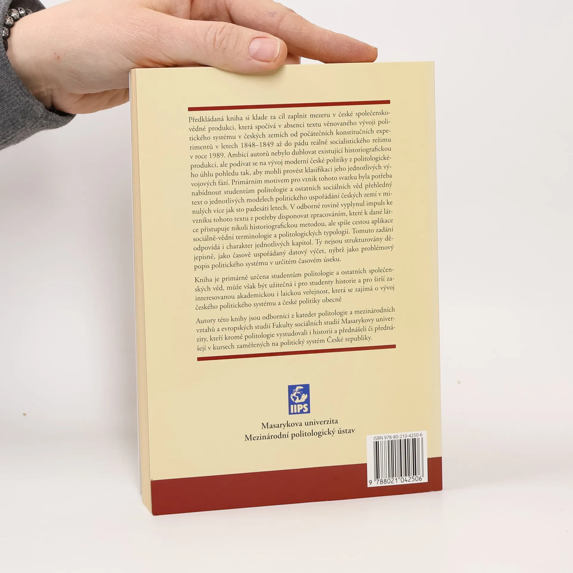 Kniha si klade za cíl zaplnit mezeru v české společensko-vědné produkci, která spočívá v absenci textu věnovaného vývoji pol. systému v českých zemích od konstitučních experimentů v letech 1848-1849 až do pádu reálně socialistického režimu v roce 1989.