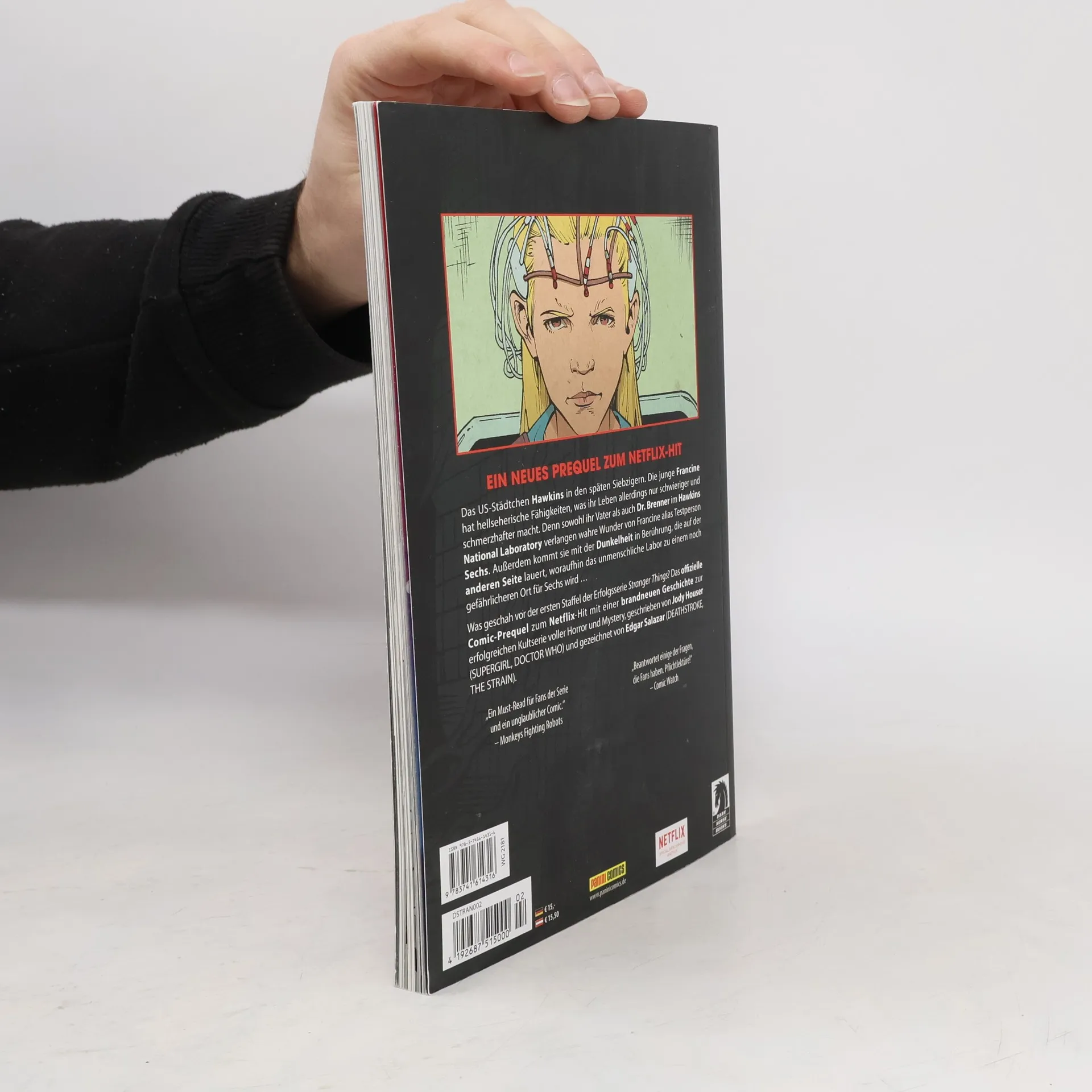 EIN NEUES PREQUEL ZUM NETFLIX-HIT Das US-Städtchen Hawkins in den späten Siebzigern. Die junge Francine hat hellseherische Fähigkeiten, was ihr Leben allerdings nur schwieriger und schmerzhafter macht. Denn sowohl ihr Vater als auch Dr. Brenner im Hawkins National Laboratory verlangen wahre Wunder von Francine alias Testperson Sechs. Außerdem kommt sie mit der Dunkelheit in Berührung, die auf der anderen Seite lauert, woraufhin das unmenschliche Labor zu einem noch gefährlicheren Ort für Sechs wird … Was geschah vor der ersten Staffel der Erfolgsserie Stranger Things? Das offizielle Comic-Prequel zum Netflix-Hit mit einer brandneuen Geschichte zur erfolgreichen Kultserie voller Horror und Mystery, geschrieben von Jody Houser (SUPERGIRL, DOCTOR WHO) und gezeichnet von Edgar Salazar (DEATHSTROKE, THE STRAIN).