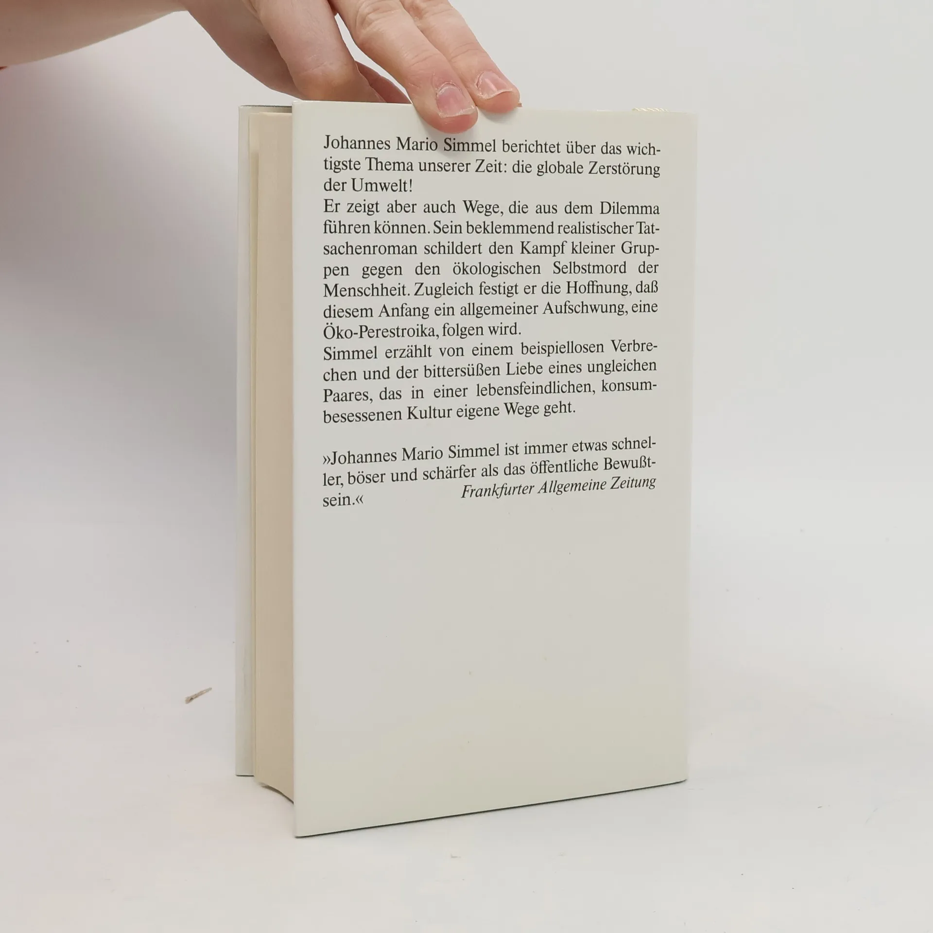Dieser Roman ist das Ergebnis dreijähriger intensiver Beschäftigung mit dem wohl wichtigsten Thema unserer Zeit, der globalen Zerstörung unserer Umwelt. Er erzählt vom Kampf einer kleinen Gruppe, die versucht, die ökologische Katastrophe aufzuhalten, und macht deutlich, daß es noch nicht zu spät ist, unsere Erde zu retten.