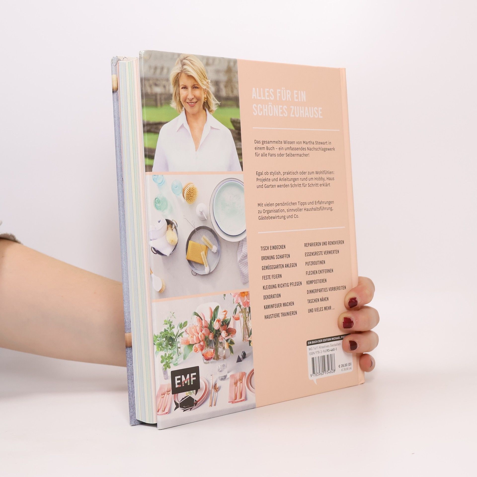 Aufräumen, dekorieren und wohlfühlen mit Martha Stewart Die Haushalts-Queen aus den USA veröffentlicht ihr gesammeltes Wissen – vom Ordnung schaffen, Reparieren und Dekorieren bis zum Gastgeben werden alle Bereiche Schritt für Schritt erklärt. Sie gibt umfassende Tipps zu allem, was das Leben erleichtert: wie man Stauraum sinnvoll nutzt, unterschiedliche Oberflächen richtig reinigt, Flecken aller Art entfernt, den Garten in Ordnung hält und kleine Reparaturen erledigt. Zudem gibt sie Anleitungen für kleine Handarbeits- und DIY-Projekte, die das Zuhause verschönern und kleine Geschenke an sich selbst sind. Ein Nachschlagewerk, das in keinem Haushalt fehlen darf, mit wunderschönen Moodfotos und praktischen Tabellen.