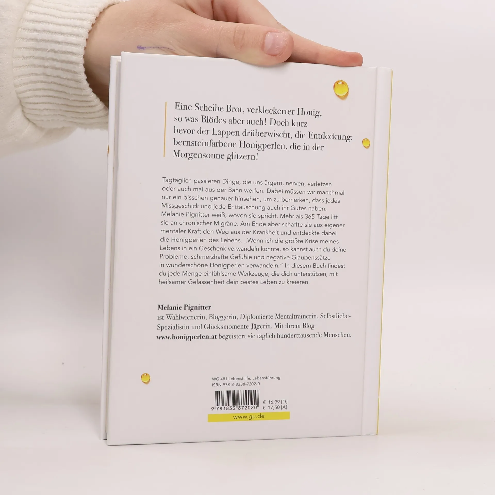 Melanie Pignitter weiß wie kaum jemand sonst, wie sehr uns die Liebe zu uns selbst positiv verändert und unser Leben erleichtert. Nach über 365 Tagen chronischer Schmerzkrankheit gewann sie durch mentales Training erst ihre Lebensfreude und schließlich ein Leben ohne Schmerzen zurück. Auf ihrem sehr erfolgreichen Blog „honigperlen. at“ schreibt die Wahlwienerin über die vermeintlich schlechten Dinge des Lebens, die bei näherer Betrachtung zu „Honigperlen“ werden – ein Bild, das sich ihr bei einem Brotzeit-Malheur offenbarte und das zum Mantra Ihres Lebensfreude-Blogs wurde. Melanie Pignitter macht vor, wie man auch mit den „schwierigen Tagen“ des Lebens zurechtkommt – ohne erhobenen Zeigefinger, offen und selbstehrlich, humorvoll und herzlich. Ihr Buch zum Blog, „Honigperlen“, zeigt dem Leser mit viel Einfühlungsvermögen neue Sichtweisen auf und hilft dabei, mit den kleinen und großen Problemen des Lebens leichter zu leben.