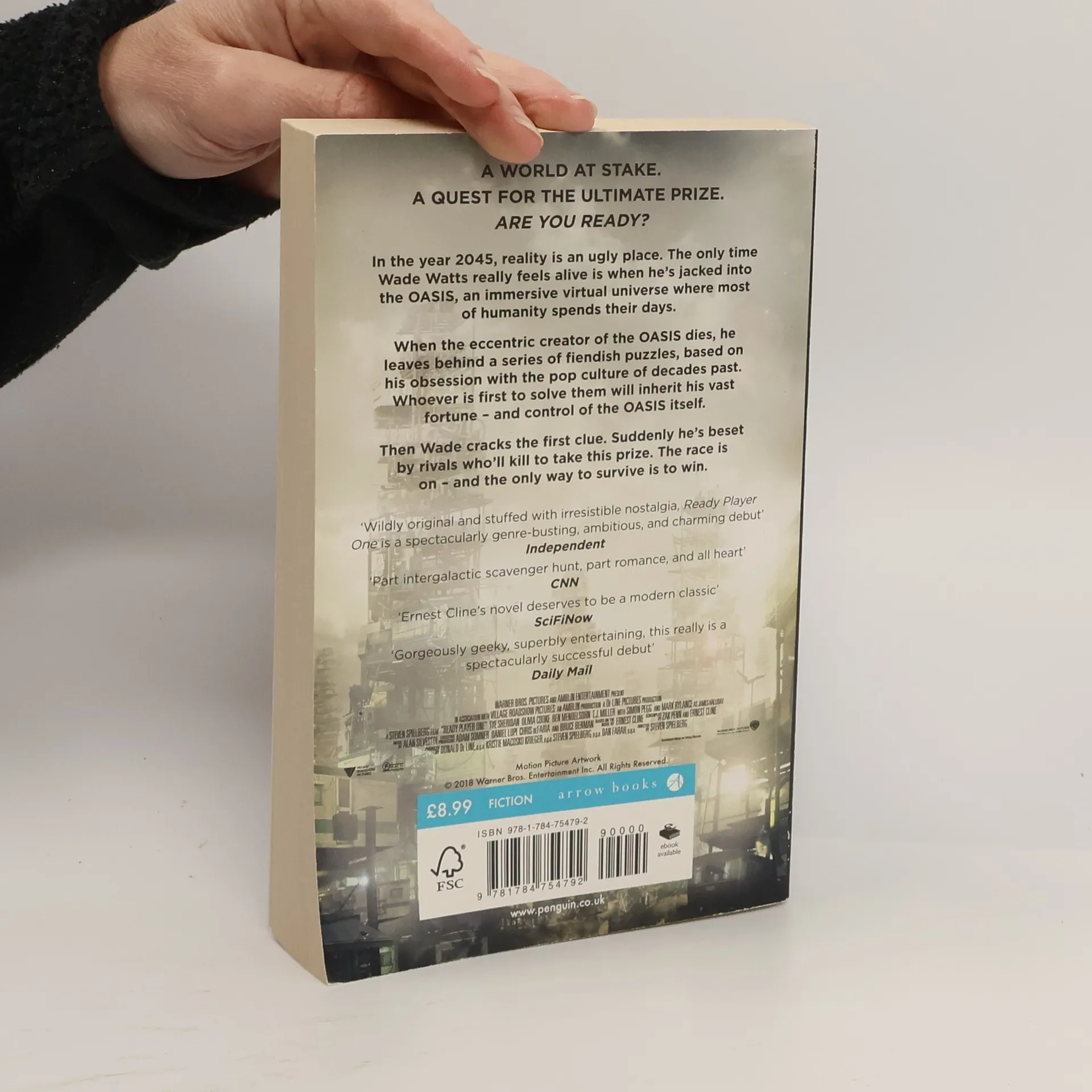 NOW A MAJOR MOTION PICTURE DIRECTED BY STEVEN SPIELBERG **A world at stake. A quest for the ultimate prize. Are you ready?** In the year 2045, reality is an ugly place. The only time Wade Watts really feels alive is when he's jacked into the OASIS, a vast virtual world where most of humanity spends their days. When the eccentric creator of the OASIS dies, he leaves behind a series of fiendish puzzles, based on his obsession with the pop culture of decades past. Whoever is first to solve them will inherit his vast fortune - and control of the OASIS itself. Then Wade cracks the first clue. Suddenly he's beset by rivals who'll kill to take this prize. The race is on - and the only way to survive is to win. 'Wildly original and stuffed with irresistible nostalgia, Ready Player One is a spectacularly genre-busting, ambitious, and charming debut' Independent 'Part intergalactic scavenger hunt, part romance, and all heart' CNN 'Ernest Cline's novel deserves to be a modern classic' SciFiNow 'Gorgeously geeky, superbly entertaining, this really is a spectacularly successful debut' Daily Mail