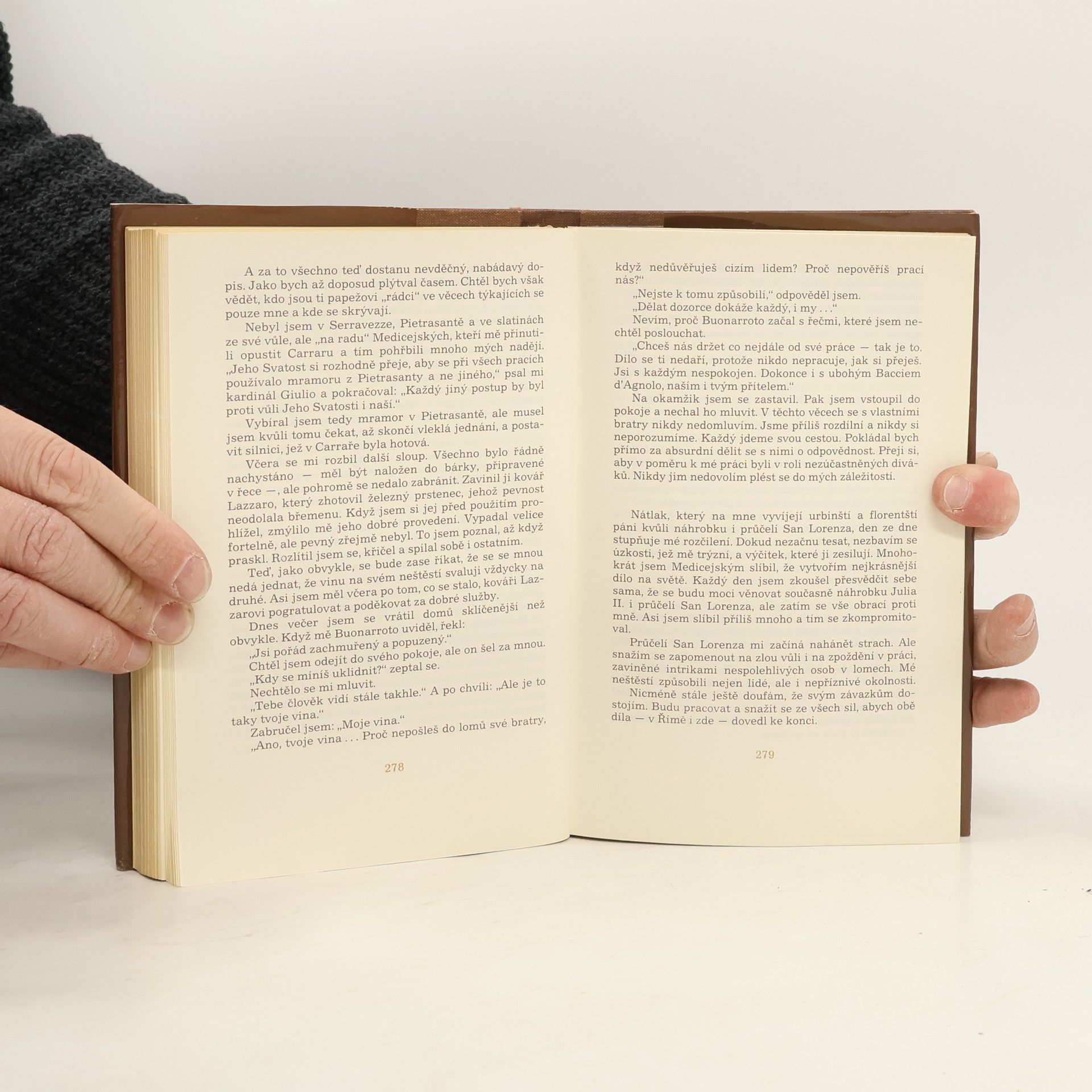Jedná se o fiktivní deník, který Michelangelo nikdy nenapsal. Nejedná se také však o pouhý životopis či zbeletrozovaný katalog umělcových děl. Autor zvolil formu, která stojí někde uprostřed mezi literaturou faktu a románem. Setkáme se zde také s originálním výkladem řady psychologickýchmomentů -např. Michelangelova vztahu k Leonardovi da Vinci, Raffaelovi nebo Juliu II. Poznáme umělcovy povahové rysy včetně jeho tzv. podivínství a bláznoství. I děje načisto vnější , jako jsou mocenské zápasy jednotlivých papežů, intriky na jejich dvoře, politické zájmy Medicejských a jejich odpůrců republikánů a jiné dobové kulisy, dostávají dík autorově deníkově metodě zcela zvláštní ladění.