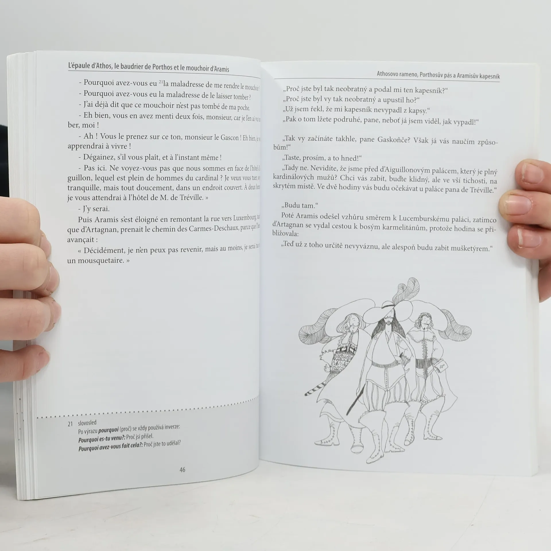 "Učte se francouzsky s Athosem, Porthosem, Aramisem a d´Artagnanem!." Tři mušketýři, Les Trois Mousquetaires patří mezi nejznámější romány francouzského spisovatele Alexandra Dumase staršího! Vybrané příběhy jsme zjednodušili tak, aby byly srozumitelné pro mírně pokročilé studenty. Navíc zrcadlový text ve francouzštině a češtině proti sobě umožňuje kontrolu, zda jste textu správně porozuměli. Doplňují jej komentáře zajímavých jazykových jevů a překlad vybraných slovíček.