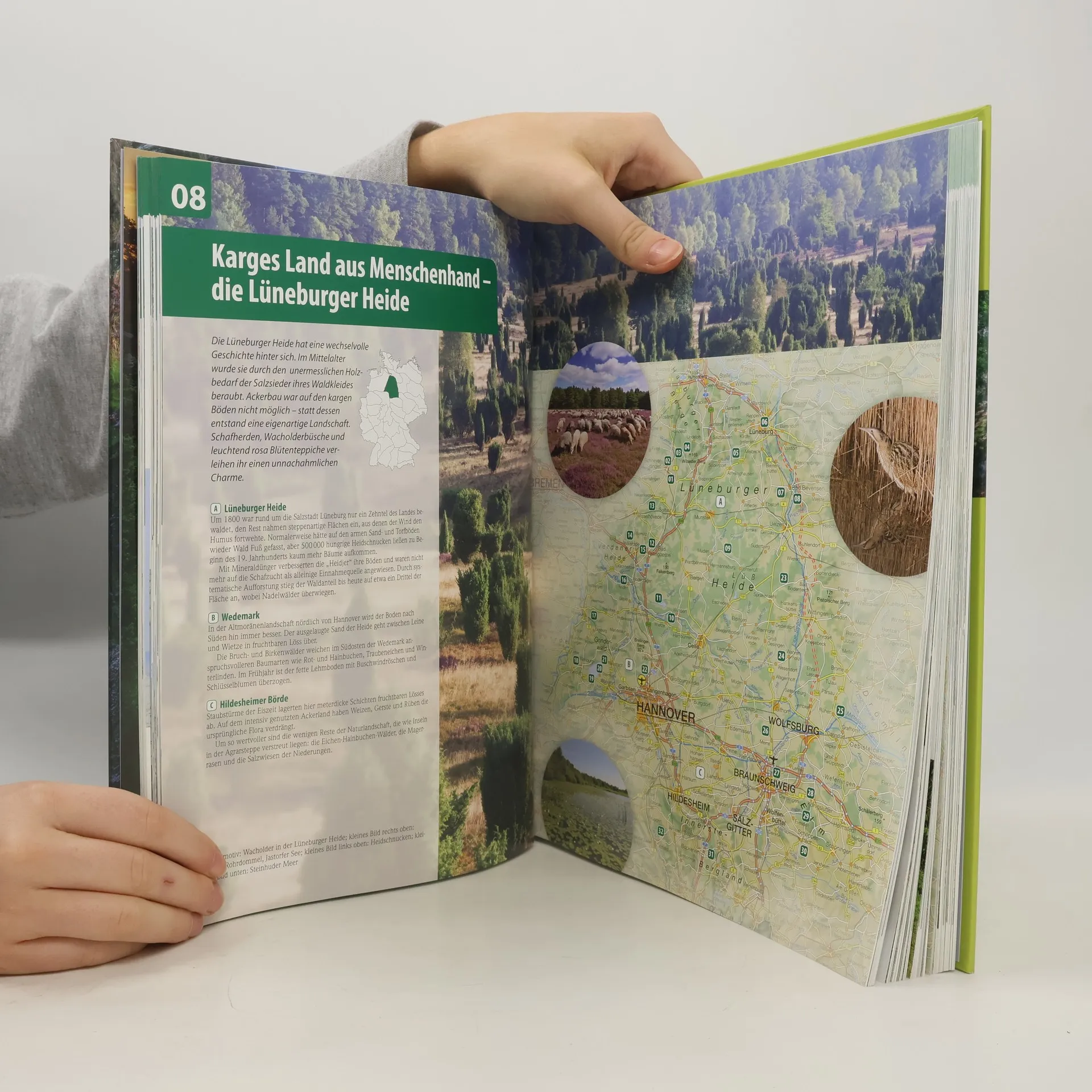 Uralte Korallenriffe, artenreiche Orchideenwiesen, stille Moore, tosende Wasserfälle, erloschene Vulkane, gewaltige Baumriesen und sogar Urwälder - dieses überwältigend bebilderte Werk präsentiert über 1000 dieser kleinen und großen Wunder. Ihre Entstehung wird von kenntnisreichen Experten erklärt, verbunden mit genauen Hinweisen, wie man sie am besten erkundet: Ob bekanntere Orte wie die Stubbenkammer mit dem Königstuhl auf Rügen oder die Blumeninsel Mainau im Bodensee, ob alltäglich erscheinende Wunder am Wegesrand, etwa einen Findling, der die Eiszeit bezeugt, oder eine Millionen Jahre alte Saurierfährte beim Steinhuder Meer. Nicht zu vergessen sind die Schätze der Tier- und Pflanzenwelt - vom fleischfressenden Sonnentau bis zum scheuen Luchs. Dieses einzigartige Werk weist Ihnen zuverlässig den Weg zu den zahlreichen Schätzen der Natur unserer wunderschönen Heimat.