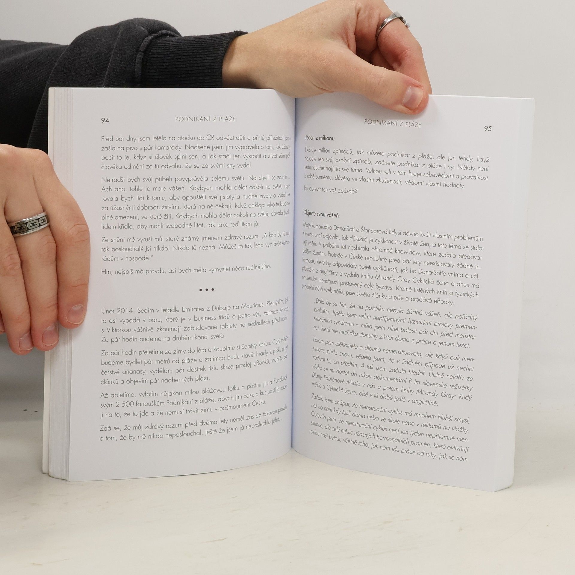 Nové, aktualizované a rozšířené vydání z roku 2020. Autorka o své knize píše: Je to pár let, co jsem žila na okraji zaprášeného sídliště v Havířově. V srdci jsem měla veliké sny o tom, jak procestuji svět, navštívím Himaláje, prožiju zimy na Bali a ukážu svým dětem krásy života. Realita byla ale dost jiná. Dvě maličké děti, krachující stavební firma i manželství a v peněžence pár korun. Bylo mi 26 let a měla jsem pocit, že jsem odsouzena k životu, který absolutně nemá smysl. Jaký má totiž smysl život, ve kterém není místo pro lásku, svobodu a splněné sny? Jaký smysl má žít život, ve kterém má člověk pořád strach, jak vyjde s penězi další měsíc? Jaký smysl má ukazovat dětem život, ve kterém já nejsem šťastná? Budou jednou šťastné ony? Rozhodla jsem se to změnit. O náročné proměně mého života, mých krocích do neznáma, vypořádávání se se strachem, stejně jako o tom, jak jsem díky tomu došla až ke životu, který žiju dnes, je právě moje kniha Podnikání z pláže.