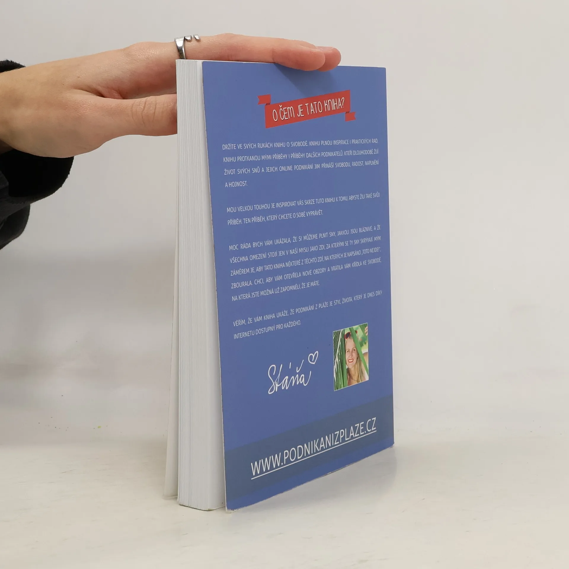 Nové, aktualizované a rozšířené vydání z roku 2020. Autorka o své knize píše: Je to pár let, co jsem žila na okraji zaprášeného sídliště v Havířově. V srdci jsem měla veliké sny o tom, jak procestuji svět, navštívím Himaláje, prožiju zimy na Bali a ukážu svým dětem krásy života. Realita byla ale dost jiná. Dvě maličké děti, krachující stavební firma i manželství a v peněžence pár korun. Bylo mi 26 let a měla jsem pocit, že jsem odsouzena k životu, který absolutně nemá smysl. Jaký má totiž smysl život, ve kterém není místo pro lásku, svobodu a splněné sny? Jaký smysl má žít život, ve kterém má člověk pořád strach, jak vyjde s penězi další měsíc? Jaký smysl má ukazovat dětem život, ve kterém já nejsem šťastná? Budou jednou šťastné ony? Rozhodla jsem se to změnit. O náročné proměně mého života, mých krocích do neznáma, vypořádávání se se strachem, stejně jako o tom, jak jsem díky tomu došla až ke životu, který žiju dnes, je právě moje kniha Podnikání z pláže.