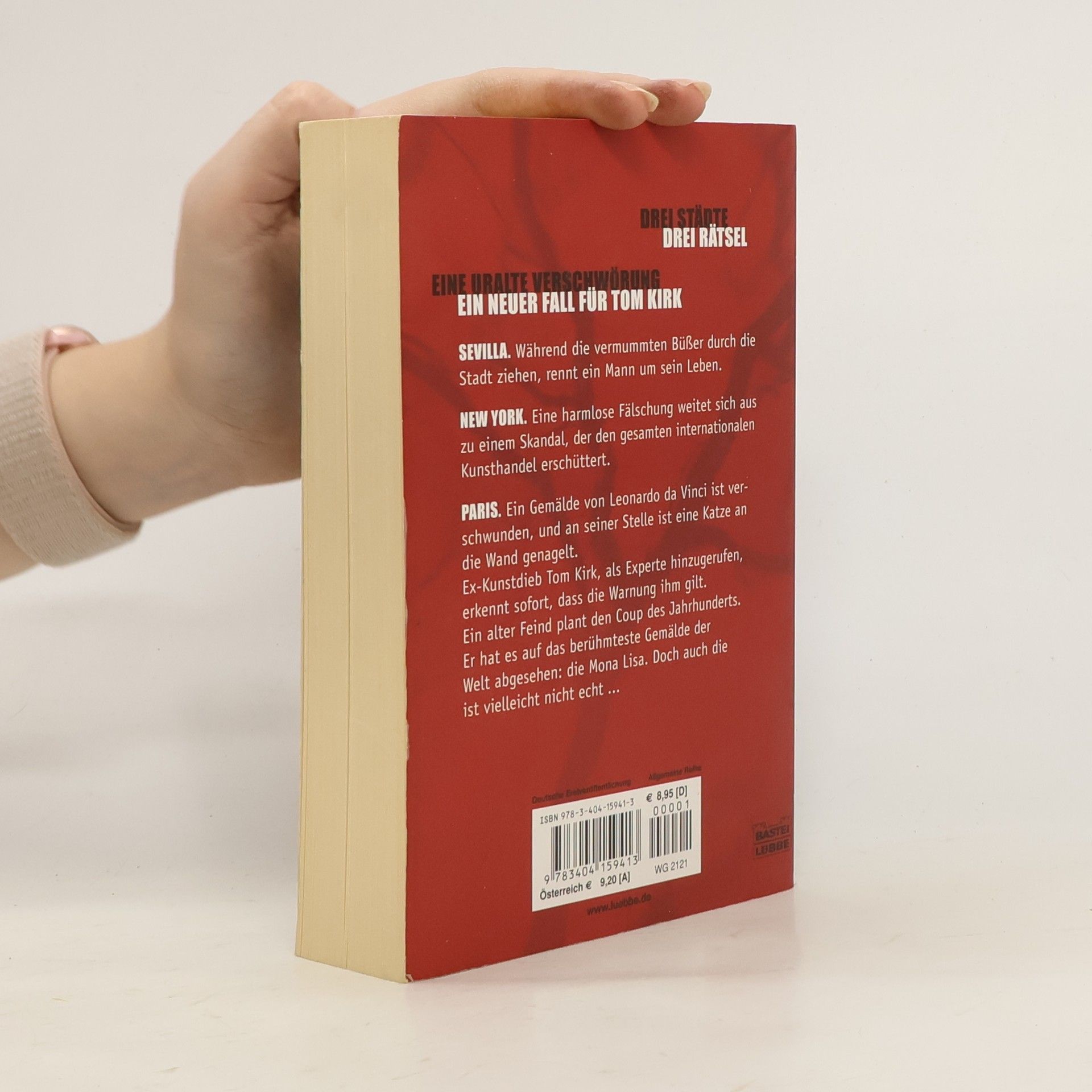 Sevilla. Während die vermummten Büßer durch die Stadt ziehen, rennt ein Mann um sein Leben. New York. Eine harmlose Fälschung weitet sich aus zu einem Skandal, der den gesamten internationalen Kunsthandel erschüttert. Drumlanrig Castle. Ein Gemälde von Leonardo da Vinci ist verschwunden, und an seiner Stelle ist eine Katze an die Wand genagelt. Ex-Kunstdieb Tom Kirk, als Experte hinzugerufen, erkennt sofort, dass die Warnung ihm gilt. Ein alter Feind plant den Coup des Jahrhunderts. Er hat es auf das berühmteste Gemälde der Welt abgesehen: die Mona Lisa. Doch auch die ist vielleicht nicht echt ...