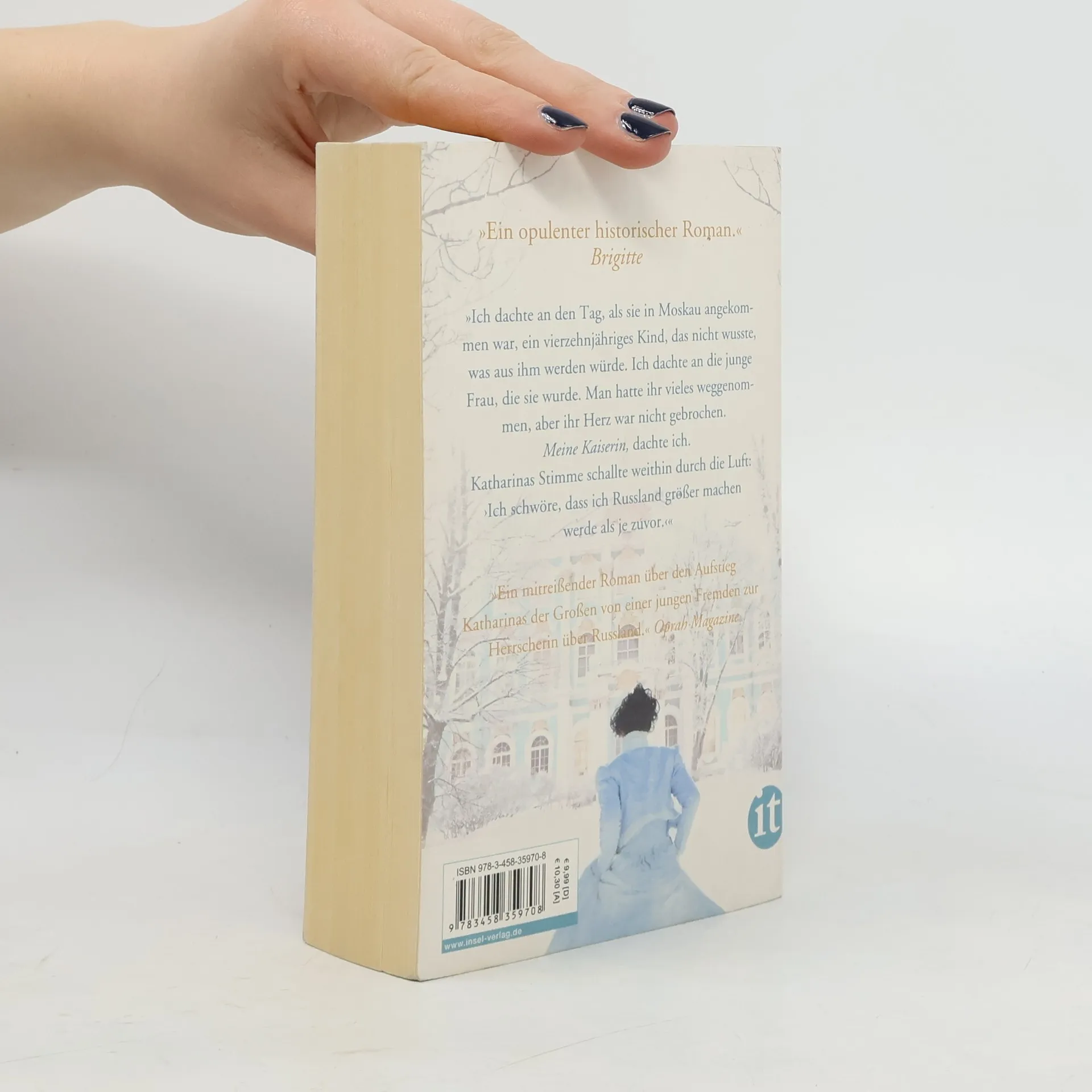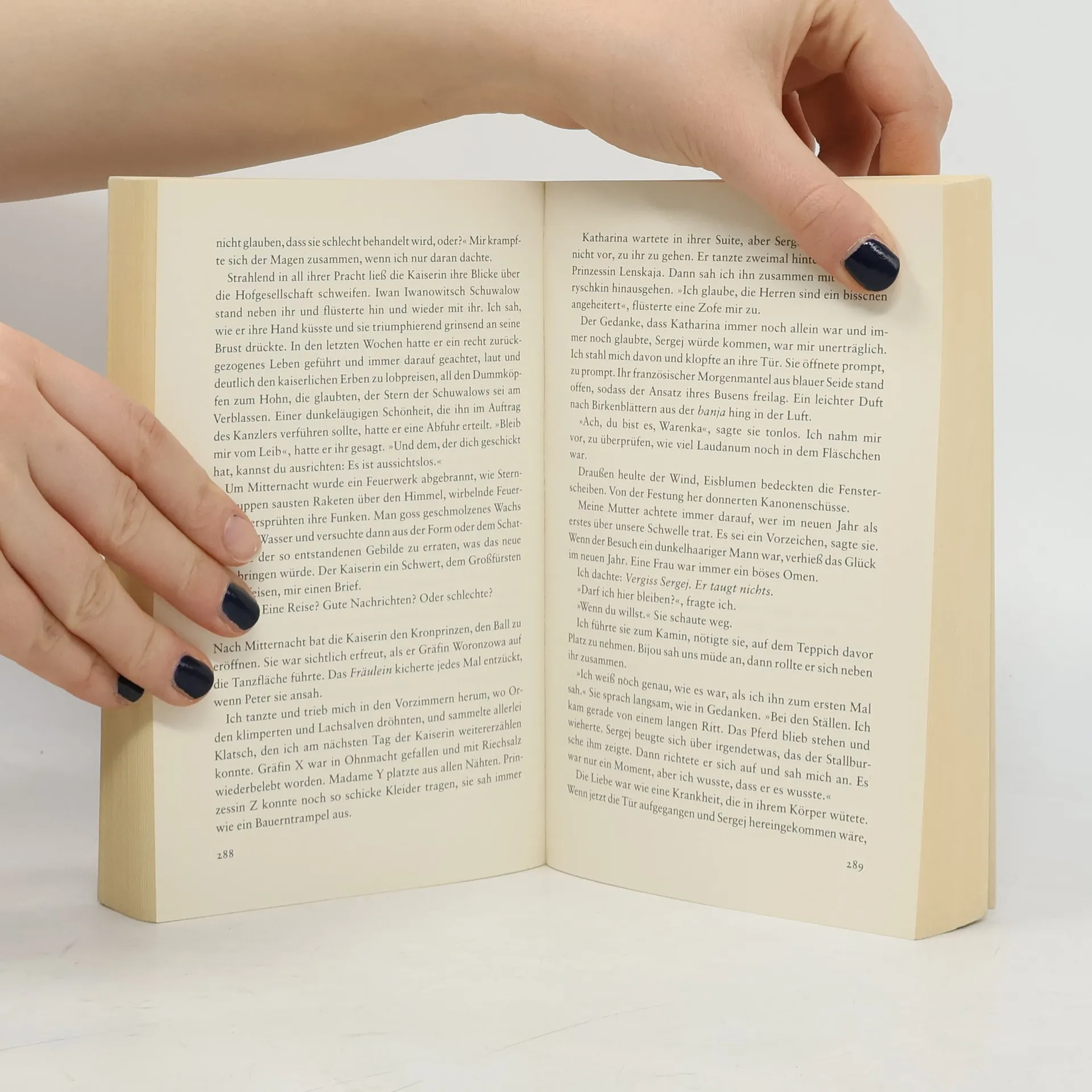 Geheime Gänge, verdeckte Türen, dunkle Nischen: Als die Waise Varvara als Dienstmädchen in den Winterpalast kommt, lernt sie schnell, sich ihre Verschwiegenheit und ihren aufmerksamen Blick zunutze zu machen. Keine Intrige, die ihr entginge, kein Getuschel, das ihren Ohren verborgen bliebe. Schnell wird sie zu einer der wichtigsten »Spioninnen« im Palast. Als die junge Sophie von Anhalt-Zerbst – die spätere Katharina die Große – an den Hof kommt und auf dem Weg zur Macht eine Verbündete braucht, wird Varvara ihre engste Vertraute. Schließlich erklimmt Katharina den Zarenthron – aus der unerfahrenen Fremden wird eine der mächtigsten Frauen ihrer Zeit. Eva Stachniaks opulenter Roman über die ungewöhnliche Freundschaft zweier Frauen führt den Leser in eine Welt, in der Leidenschaft und Vertraulichkeit auf Heimtücke und Verrat treffen – in die abgründig-geheimnisvolle Welt des russischen Zarenhofs, gehüllt in schweren Brokat und knisternde Seide.
