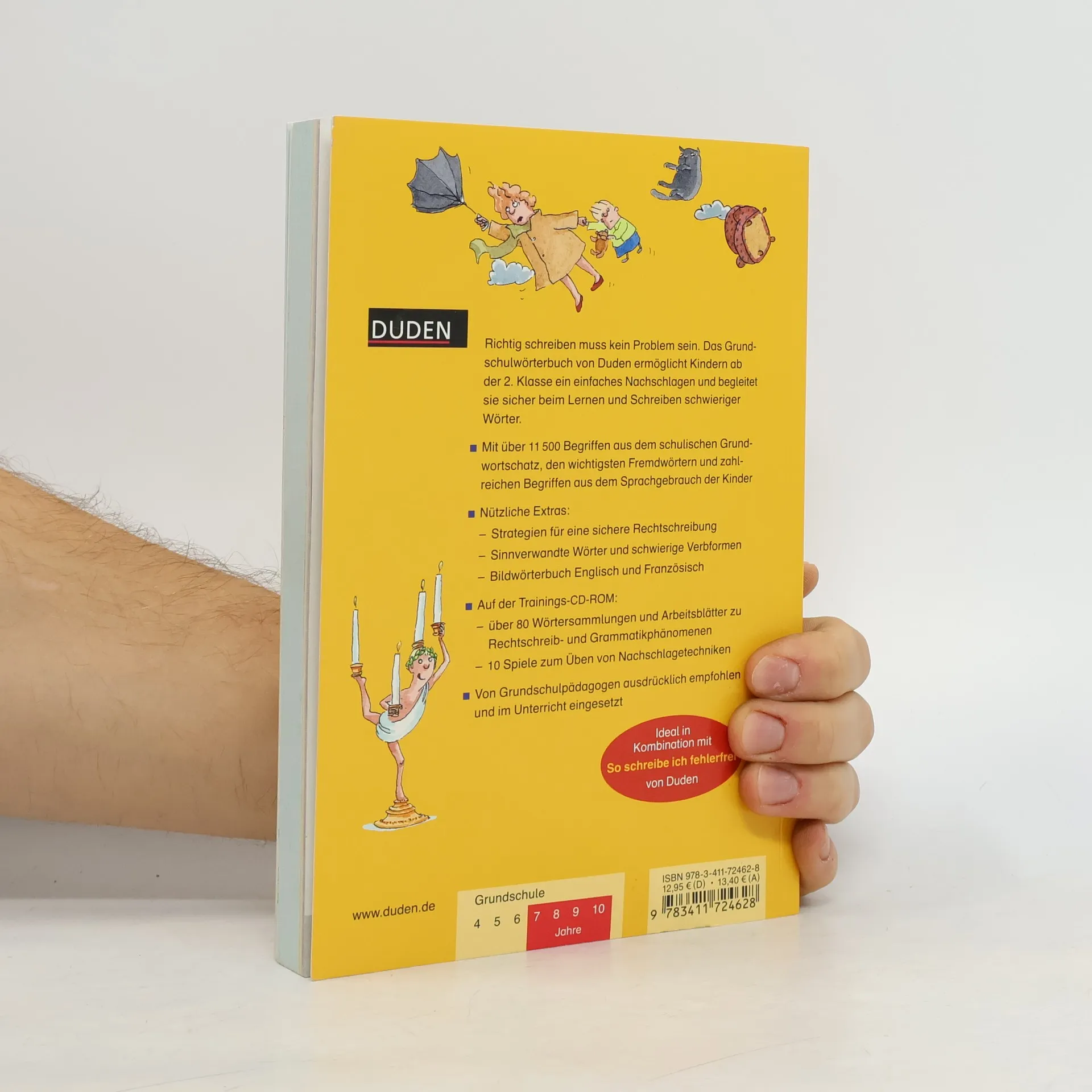 Dieses Wörterbuch enthält mit 11 500 Begriffen den Wortschatz für die Grundschulzeit und ermöglicht Kindern ab der 2. Klasse ein einfaches Nachschlagen. Es begleitet sie sicher beim Lernen und Schreiben schwieriger Wörter. Bunte Suchhilfen erleichtern das rasche Finden der Wörter. Im Anhang finden sich nützliche Extras wie ein Bildwörterbuch Englisch und Französisch, Strategien für eine bessere Rechtschreibung, eine Übersicht schwieriger Wörter, die oft falsch geschrieben werden, sowie eine Liste sinnverwandter Wörter. Inklusive einer CD-ROM zum Üben mit interaktiven Spielen, Arbeitsblättern und Wörtersammlungen.