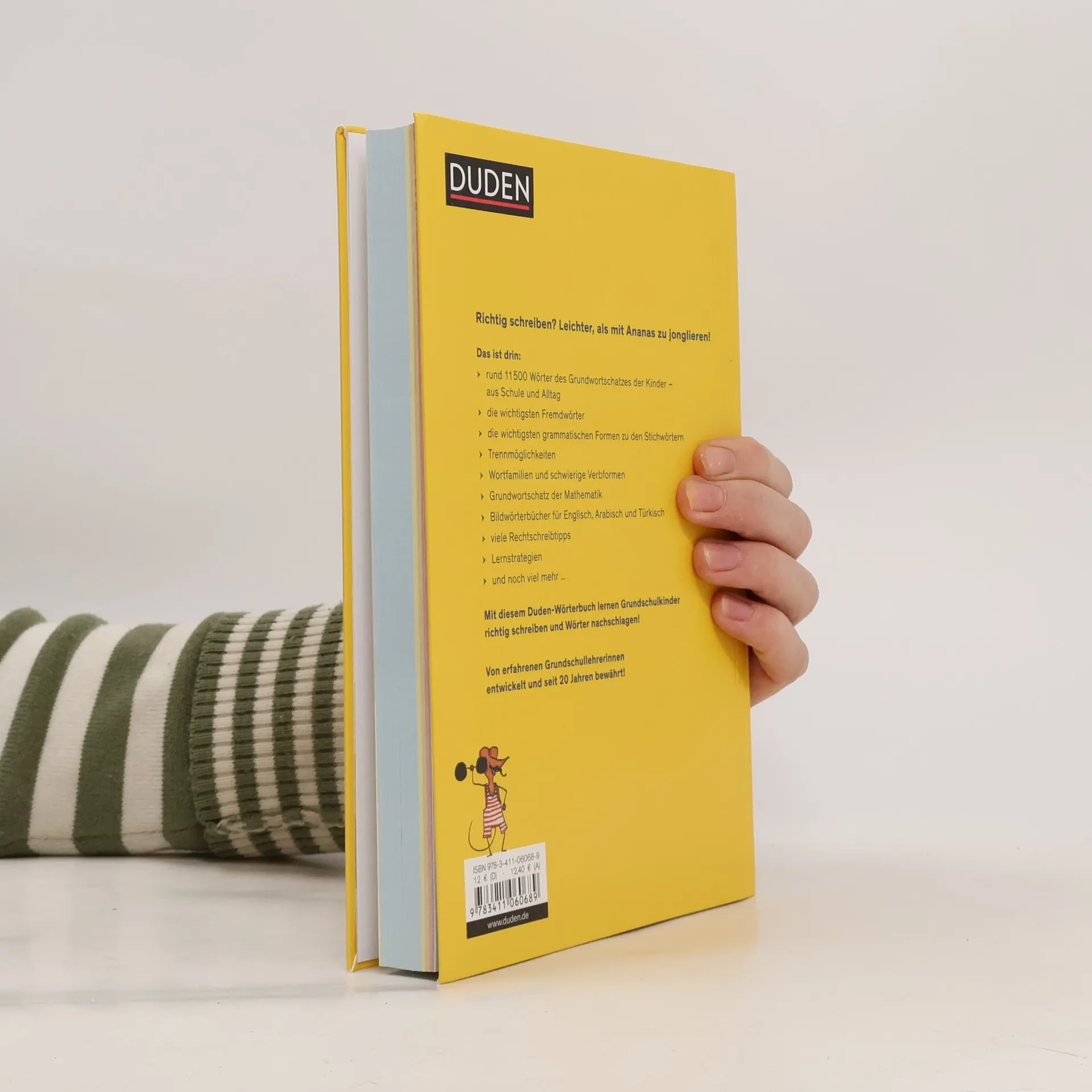 „Das Grundschulwörterbuch" - seit über 20 Jahren DER Duden für Kinder.Vollständig überarbeitet und erweitert, enthält dieser Band gut 11.500 Wörter und bildet so den Wortschatz für die gesamte Grundschulzeit ab. Das beliebte Nachschlagewerk bietet:- eine übersichtliche A-Z-Wörterliste mit Silbentrennung und flektierten Formen- eine Liste der schwierigen Verbformen- Extrakapitel zu Wortfamilien und Wortfeldern (inklusive Synonymen für abwechslungsreiches Formulieren)- zahlreiche Rechtschreibtipps und -strategien- einen liebevoll illustrierten Bildwörterbuchteil in Englisch, Türkisch und Arabisch- ein Glossar der wichtigsten Fachbegriffe aus dem Deutsch- und Mathematikunterricht Mit einer Arbeitsblatt- und Materialsammlung für Lehrerinnen und Lehrer zum Downloaden inklusive umfangreichem Themenwortschatz, einer A-Z-Wörterliste für die 1. Klasse sowie einem Bildwörterbuchteil in Französisch. Das Grundschulwörterbuch von Duden ermöglicht Kindern ab der 2. Klasse ein einfaches Nachschlagen und begleitet sie sicher beim Lernen und Schreiben schwieriger Wörter. Liebevoll und mit viel Witz von Kerstin Meyer illustriert, macht das Buch Lust aufs Stöbern und Wörterfinden. Von Lehrerinnen und Lehrern empfohlen.