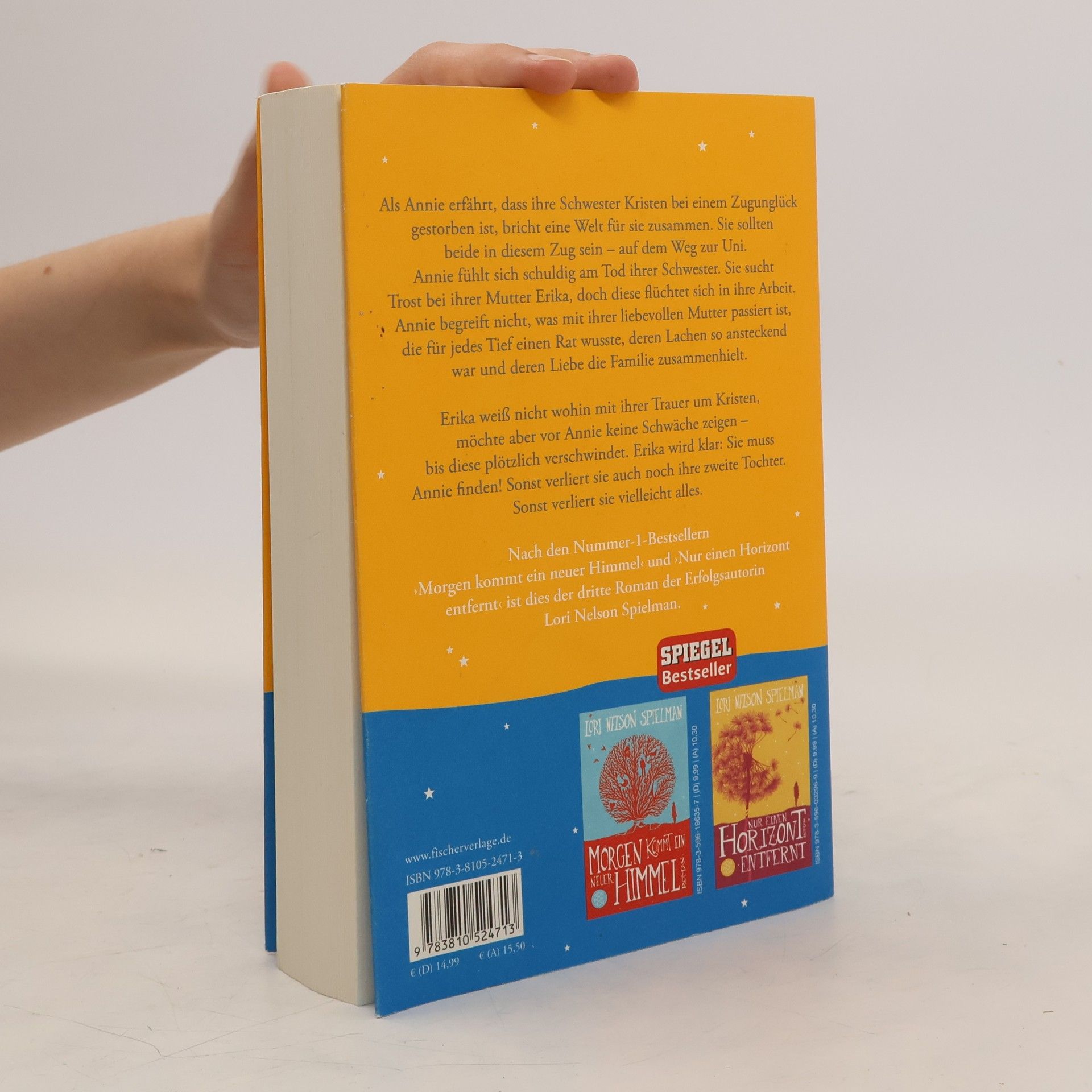 Ein ergreifender und aufrüttelnder Bestseller von Lori Nelson Spielman, der Mut macht, sich auf die Suche nach dem Glück zu machen. Man weiß nie, wo man es finden wird. Als Annie erfährt, dass ihre Schwester Kristen bei einem Zugunglück gestorben ist, bricht eine Welt für sie zusammen. Sie sollten beide in diesem Zug sein – auf dem Weg zur Uni. Annie fühlt sich schuldig am Tod ihrer Schwester. Sie sucht Trost bei ihrer Mutter Erika, doch diese flüchtet sich in ihre Arbeit. Annie begreift nicht, was mit ihrer liebevollen Mutter passiert ist, die für jedes Tief einen Rat wusste, deren Lachen so ansteckend war und deren Liebe die Familie zusammenhielt. Erika weiß nicht wohin mit ihrer Trauer um Kristen, möchte aber vor Annie keine Schwäche zeigen – bis diese plötzlich verschwindet. In ihrer Verzweiflung denkt sie immer wieder an eine Lebensweisheit ihrer Mutter „Verwechsle niemals das, was wichtig ist, mit dem, was wirklich zählt“. Erika wird klar: Sie muss Annie finden! Sonst verliert sie auch noch ihre zweite Tochter. Sonst verliert sie vielleicht alles. Endlich – der dritte herzergreifende Roman von Weltbestsellerautorin Lori Nelson Spielman! Nach den Erfolgsromanen ›Morgen kommt ein neuer Himmel‹ und ›Nur einen Horizont entfernt‹ kommt mit ›Und nebenan warten die Sterne‹ ein neuer bewegender Roman für alle Mütter, Töchter und Schwestern, der jede Leserin begeistern wird.