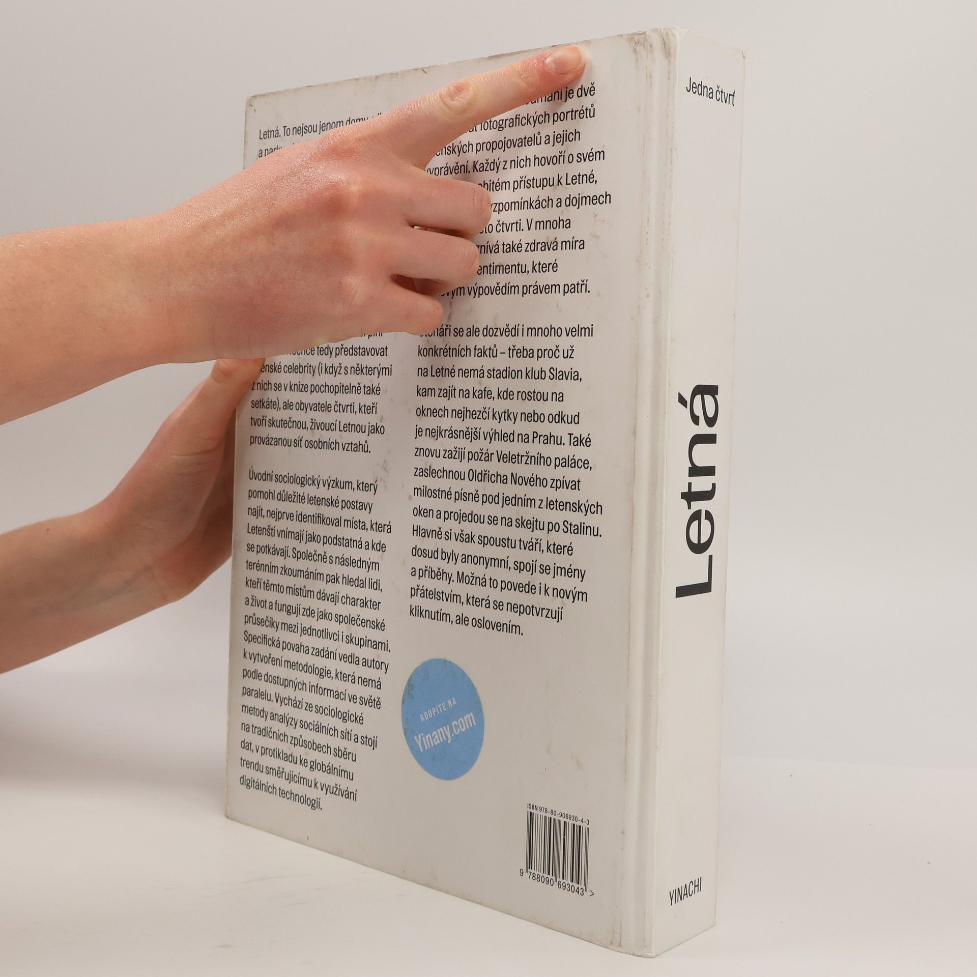 Letná. To nejsou jenom domy, ulice a parky, ale především lidé, kteří určují atmosféru a ráz sousedství. Unikátní knižní exkurze objevuje lidi, u kterých se sbíhají propletené nitky místních sociálních vazeb: „propojovatele“, kteří společně pomáhají držet letenskou komunitu pohromadě. Výběr stojí na sociologickém výzkumu, jehož metodologie byla navržena na míru tomuto projektu a ve světě nemá paralelu. Publikace tedy nechce ukazovat jen letenské celebrity, ale obyvatele, kteří vytvářejí skutečnou, každodenní Letnou. Kniha představuje 250 fotografických portrétů letenských propojovatelů a jejich vyprávění. Každý z nich hovoří o svém vlastním, osobitém přístupu k Letné, o svém životě, vzpomínkách a dojmech získaných v této čtvrti. Spousta tváří, které dosud mohly být i mnoha Letenským známé jen z letmých pohledů, tak najednou získává zcela konkrétní rysy. Může to vést i k novým přátelstvím, která se nepotvrzují kliknutím, ale oslovením.