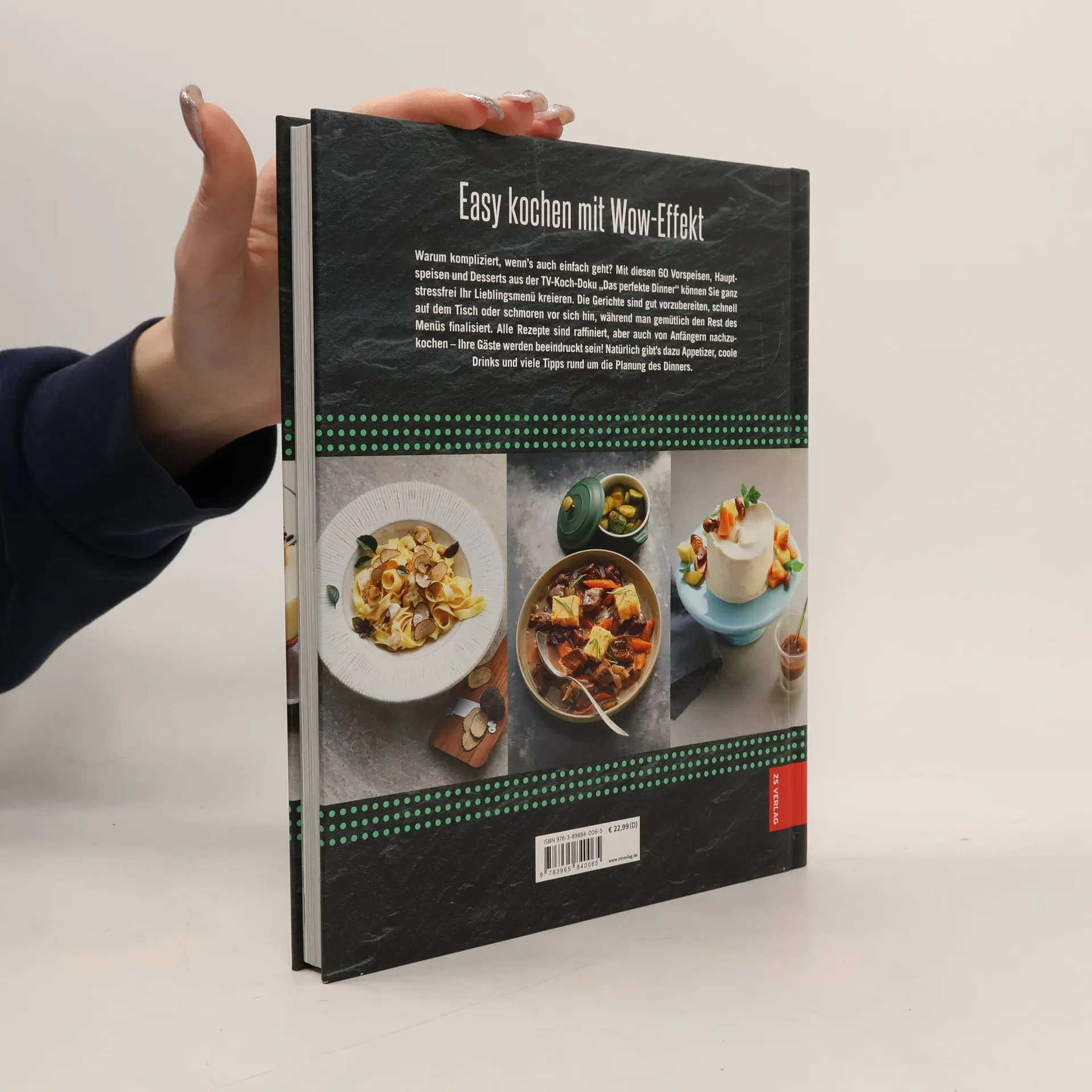 Die TV-Koch-Doku »Das perfekte Dinner« auf VOX ist ein Dauerbrenner. In der Sendung laden sich jede Woche fünf Hobbyköche gegenseitig zu einem Drei-Gänge-Menü ein und bewerten ihre Gerichte und die Gastgeberqualitäten der jeweils anderen Teilnehmer. Der Sieger hat das perfekte Dinner geboten. Das neue Buch zur beliebten TV-Serie steht unter dem Motto »einfach & genial«: 60 Rezepte – aufgeteilt nach Vorspeisen, Hauptspeisen und Desserts –, die sich zu Hause mit kleinem Aufwand beim Kochen, aber mit großem Showeffekt für die Gäste zubereiten lassen. Die Gerichte sind gut vorzubereiten, mit wenigen Zutaten flott fertig oder schmoren vor sich hin, während man gemütlich die anderen Komponenten des Menüs zubereitet. Eins haben alle Rezepte gemeinsam: Sie sind raffiniert, aber auch von Anfängern in jeder Küche nachzukochen. Dazu finden sich in diesem Buch zahlreiche Tipps und Tricks rund ums Zeitsparen und die Planung des Dinners, Menüzusammenstellungen für viele Mottos und Jahreszeiten und Drinks, die auch Cocktail-Neulinge im Handumdrehen aus dem Ärmel zaubern können. So ist ein perfektes Dinner garantiert, das viel hermacht und easy zubereitet ist!