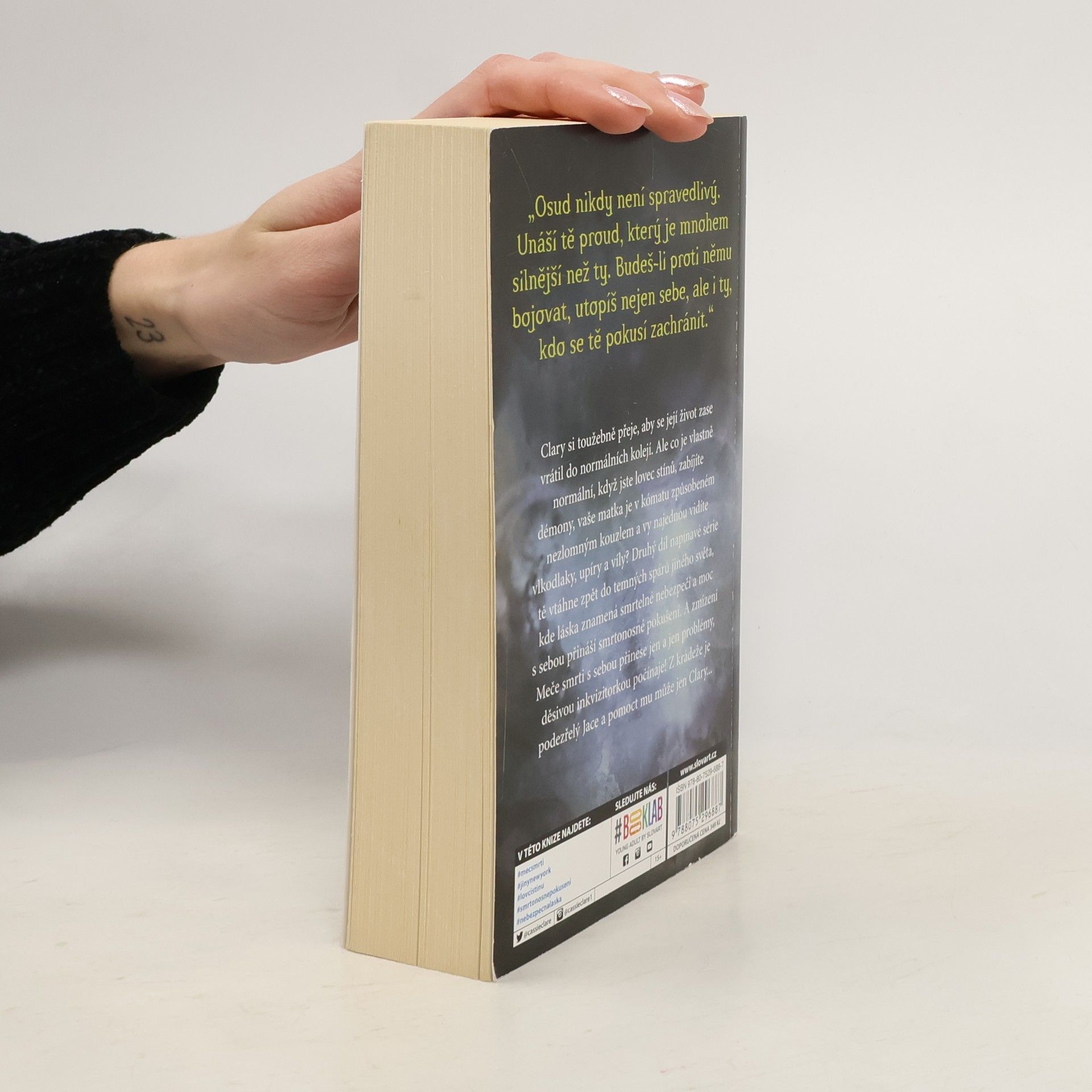 Clary Frayová si toužebně přeje, aby se její život zase vrátil do normálních kolejí. Ale co je vlastně normální, když jste lovec stínů, zabíjíte démony, vaše matka je v kómatu způsobeném zlověstným kouzlem a vy najednou všude vidíte vlkodlaky, upíry a pro obyčejné lidi nepředstavitelné příšery? V druhém díle se navracíme zpět do temných spárů „jiného světa“, kde láska vždy znamená nebezpečí a moc s sebou přináší smrtonosné pokušení.