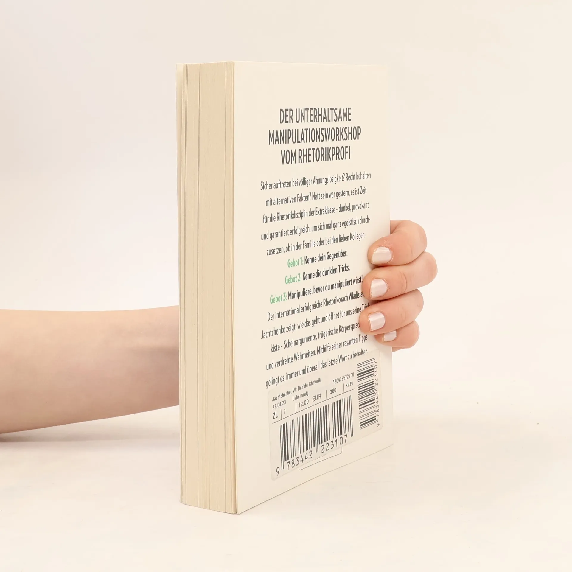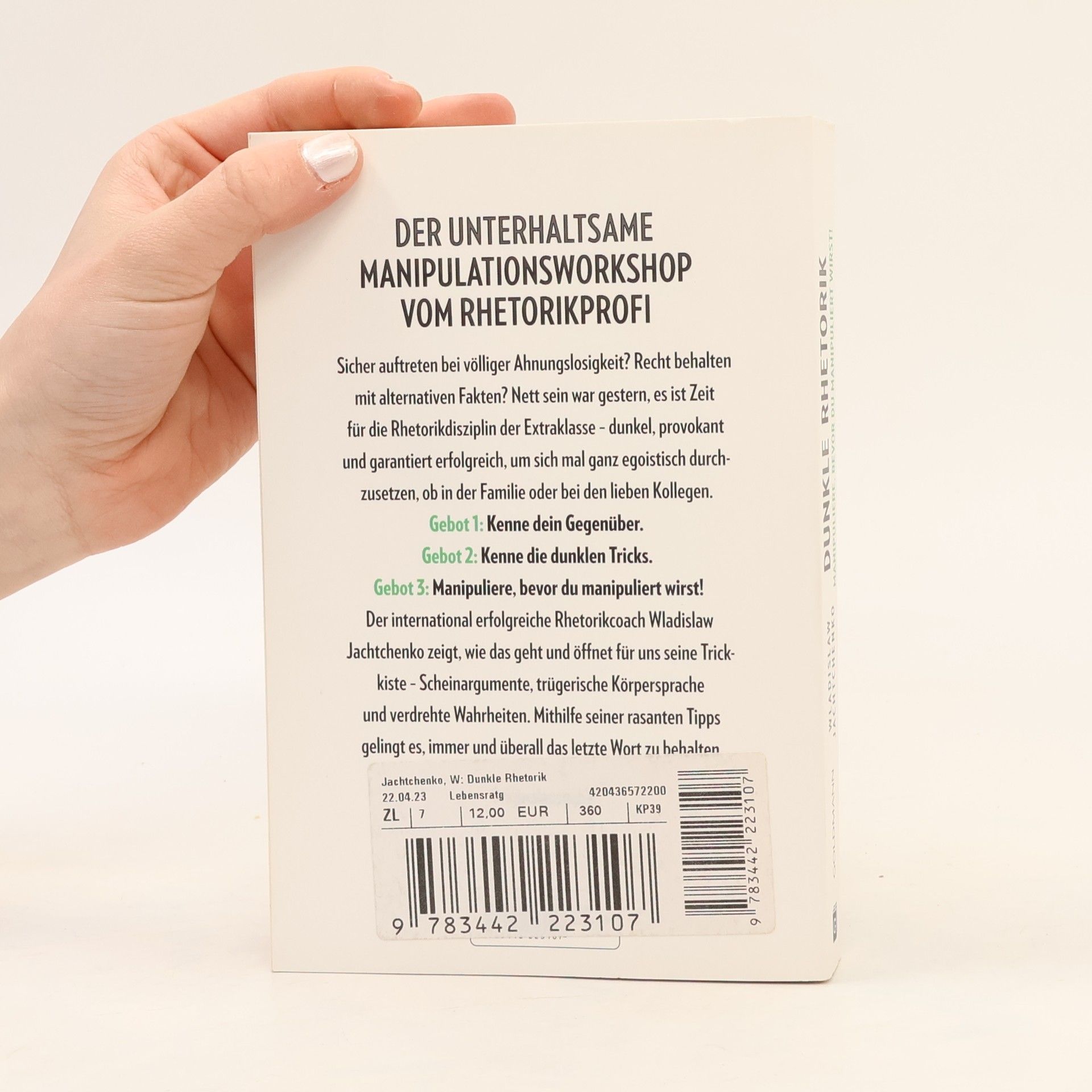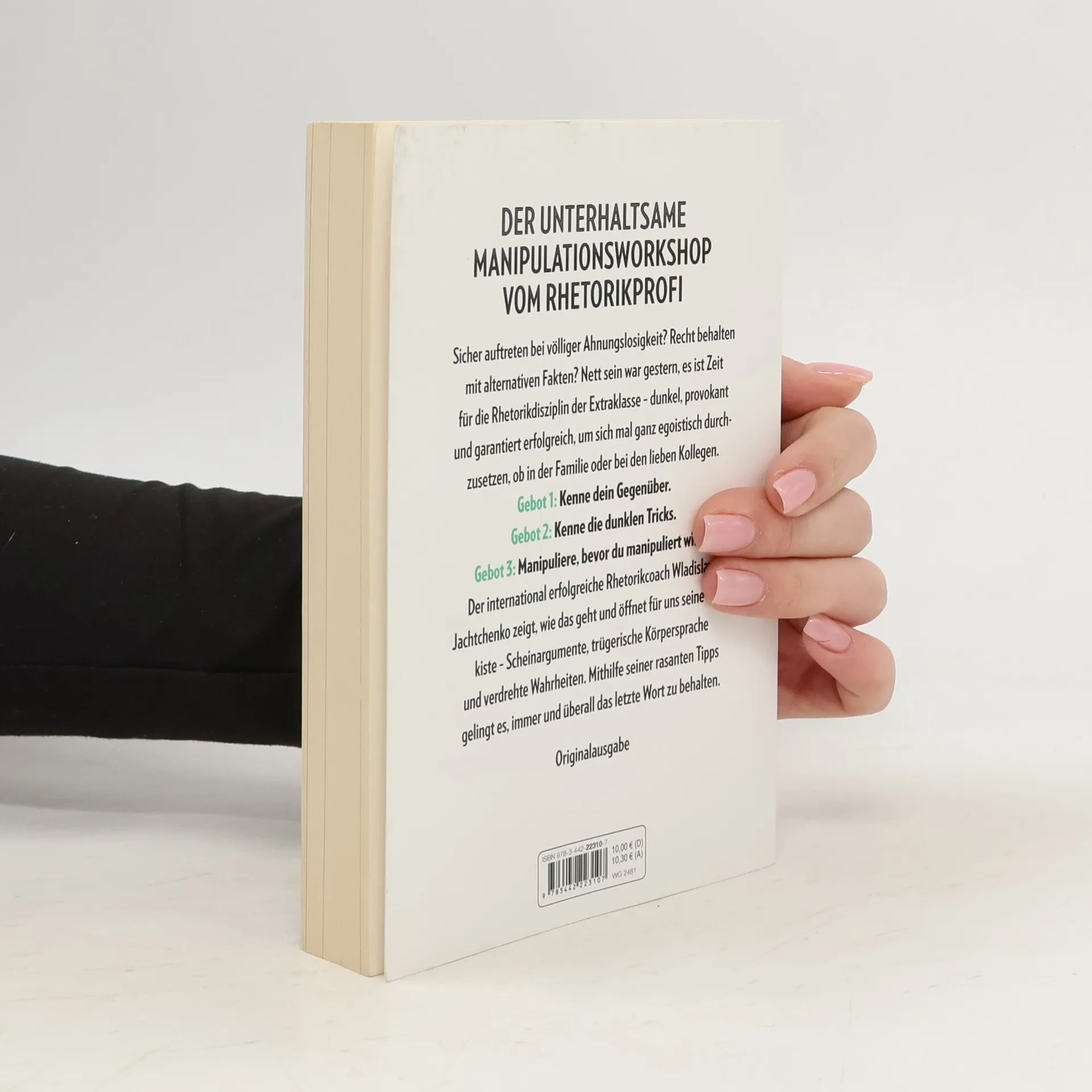 Der unterhaltsame Manipulationsworkshop vom Rhetorik-Profi. Sicher auftreten bei völliger Ahnungslosigkeit? Recht behalten mit alternativen Fakten? Nett sein war gestern, es ist Zeit für die Rhetorik-Disziplin der Extraklasse – schwarz, provokant und garantiert erfolgreich, um sich mal ganz egoistisch durchzusetzen, ob in Beruf oder Familie. Gebot 1: Kenne dein Publikum. Gebot 2: Nimm keine Rücksicht. Gebot 3: Manipuliere, bevor du manipuliert wirst! Der Rhetorik-Profi Wladislaw Jachtchenko zeigt, wie das geht und öffnet seine Trickkiste, gefüllt mit Scheinargumenten, trügerischer Körpersprache und verdrehten Wahrheiten. Mithilfe seiner Übungen gelingt es, immer und überall das letzte Wort zu haben. Dieser Titel war bereits unter dem Titel »Schwarze Rhetorik« erschienen.