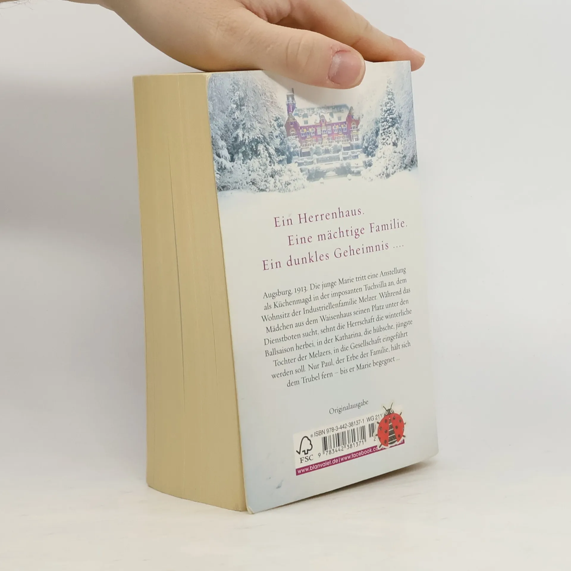 Ein Herrenhaus. Eine mächtige Familie. Ein dunkles Geheimnis … Augsburg, 1913. Die junge Marie tritt eine Anstellung als Küchenmagd in der imposanten Tuchvilla an, dem Wohnsitz der Industriellenfamilie Melzer. Während das Mädchen aus dem Waisenhaus seinen Platz unter den Dienstboten sucht, sehnt die Herrschaft die winterliche Ballsaison herbei, in der Katharina, die hübsche, jüngste Tochter der Melzers, in die Gesellschaft eingeführt wird. Nur Paul, der Erbe der Familie, hält sich dem Trubel fern und zieht sein Münchner Studentenleben vor – bis er Marie begegnet …