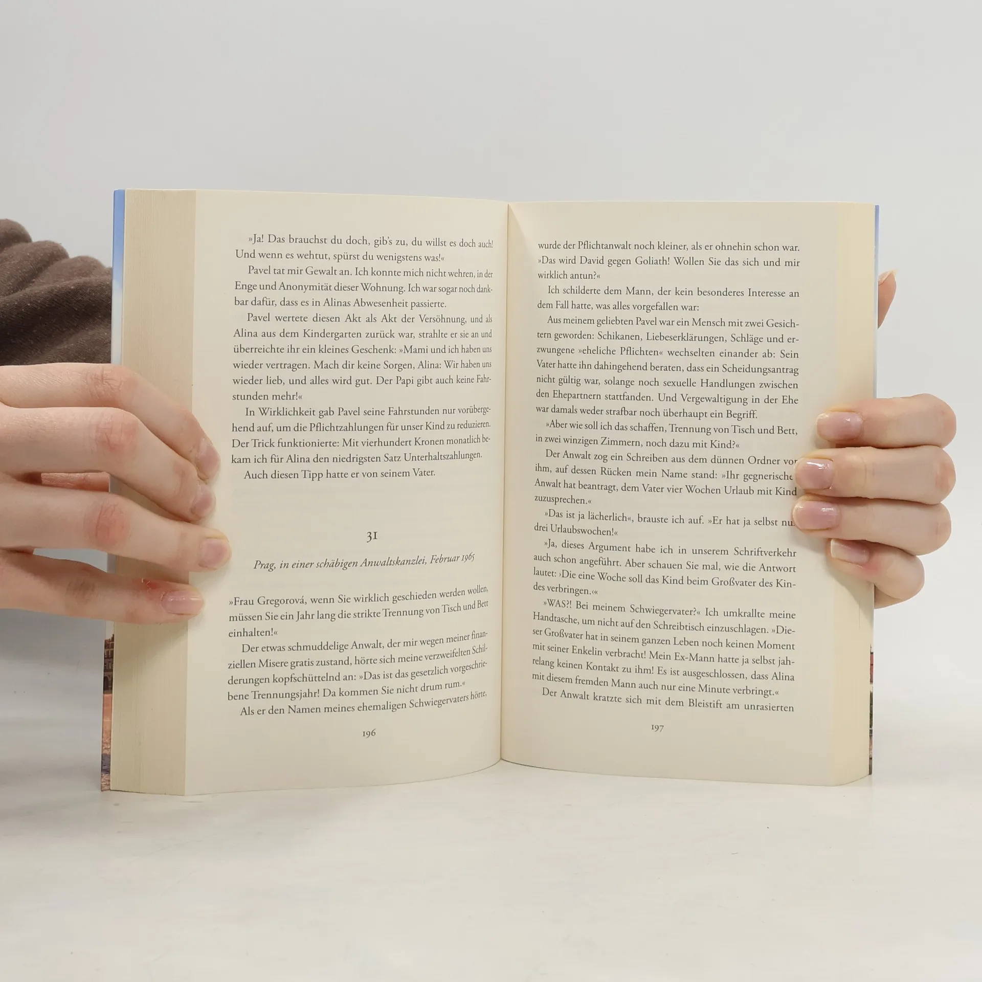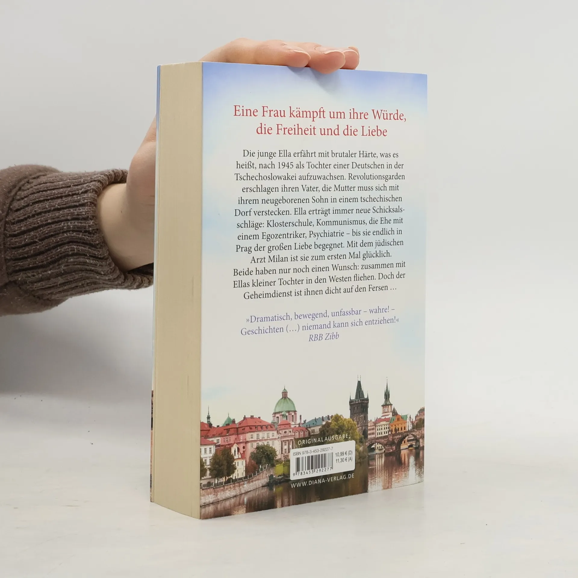 Die junge Ella erfährt mit brutaler Härte, was es heißt, nach 1945 als Tochter einer Deutschen in der Tschechoslowakei aufzuwachsen. Revolutionsgarden erschlagen ihren Vater, die Mutter muss sich mit ihrem neugeborenen Sohn in einem tschechischen Dorf verstecken. Ella erträgt immer neue Schicksalsschläge: Klosterschule, Kommunismus, die Ehe mit einem Egozentriker, Psychiatrie – bis sie endlich in Prag der großen Liebe begegnet. Mit dem jüdischen Arzt Milan ist sie zum ersten Mal glücklich. Beide haben nur noch einen Wunsch: zusammen mit Ellas kleiner Tochter in den Westen fliehen. Doch der Geheimdienst ist ihnen dicht auf den Fersen …