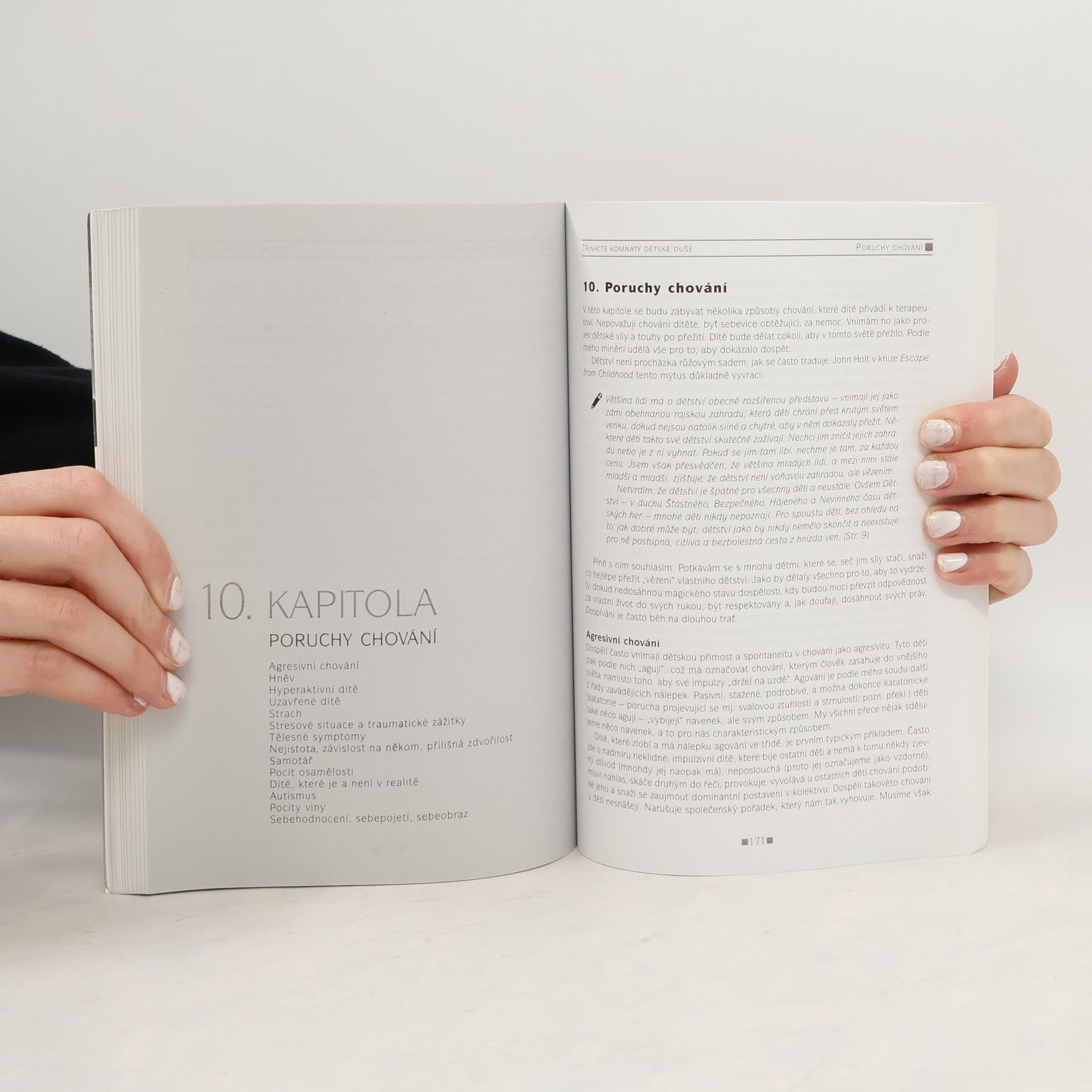 Kniha obsahuje mnoho konkrétních ukázek z terapeutické práce s dětmi. Ukazuje čtenáři množství rafinovaných technik, jak nenásilně zjistit, kde dítě v jeho psychickém a emocionálním životě tzv."tlačí pata". Nahlédnutí do dětské duše prostřednictvím kreseb, práce s hlínou, sny, přehrávání životních rolí a situací... a mnoha dalších terapeutických technik. Autorka, psycholožka a terapeutka věnující se práci s dětmi, sděluje své osobní zkušenosti z praxe. Ukazuje možnosti, které nabízejí popisované terapeutické techniky a Gestalt přístup - malí klienti jejich prostřednictvím navazují s terapeutem lepší komunikaci, sdělují své pocity a problémy, na které slova nestačí. Zmíněná terapie se výborně uplatňuje i při práci s dětmi trpícími poruchami chování. Zajímavá, osobitá kniha. Ač vydaná poprvé už před třiceti lety, neztratila nic na své atraktivitě. Navíc je napsaná čtivě, srozumitelně, takže ji mohou číst odborníci i laici: psychologové, pedagogové, rodiče.