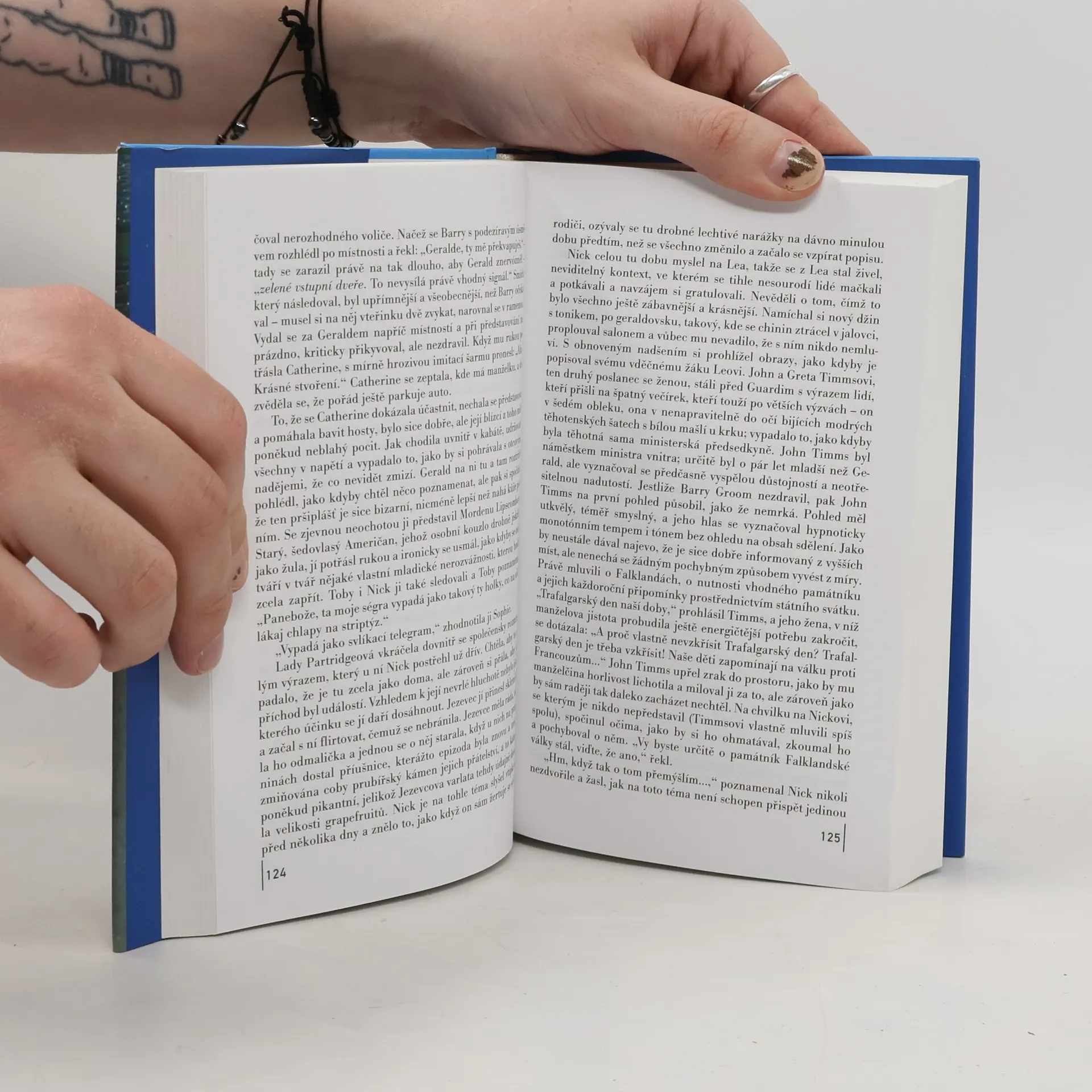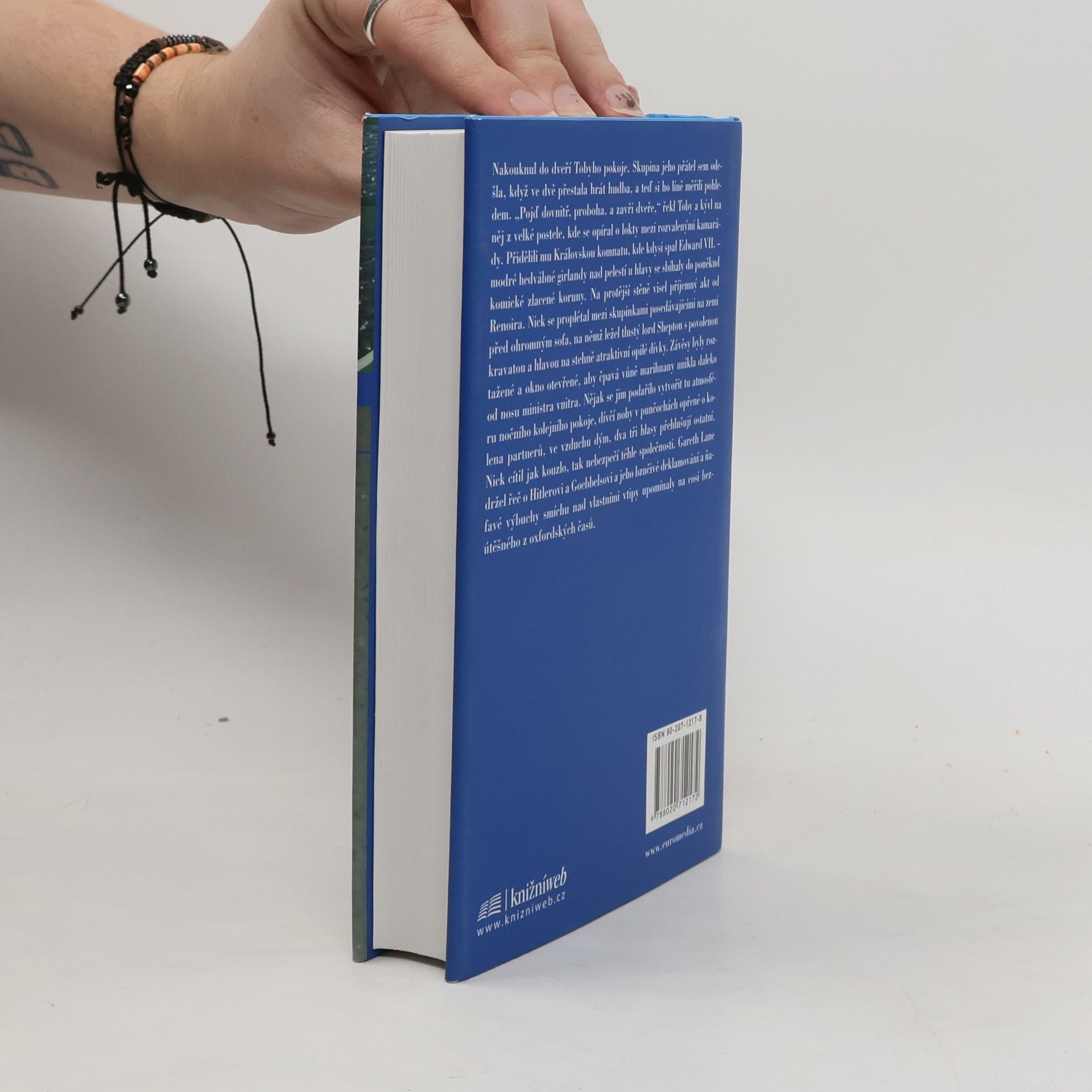 Společensko-kritický román z lepší anglické společnosti vypráví příběh jednadvacetiletého mladého muže, který se snaží zakotvit mezi společenskou smetánkou. Kniha reflektuje čtyři dramatické roky života Nicka Guesta, mladíka ze skromných poměrů a absolventa Oxfordu, který má možnost bydlet v honosném londýnském domě konzervativního poslance Feddena. Hlavní hrdina, prahnoucí po lásce i dobré společnosti, je doslova uhranut lidmi, kteří ho obklopují. Záhy však poznává svou první lásku, Lea, jenž je jeho společenskému postavení na hony vzdálen. Děj knihy se odehrává v Anglii v osmdesátých letech dvacátého století, během vlády M. Thatcherové a jeho nedílnou součástí je obraz tehdejší politické situace. Zároveň zde autor popisuje nesnadnost klidného života pro homosexuála ve společnosti snobů a tzv. lepších lidí.... celý text