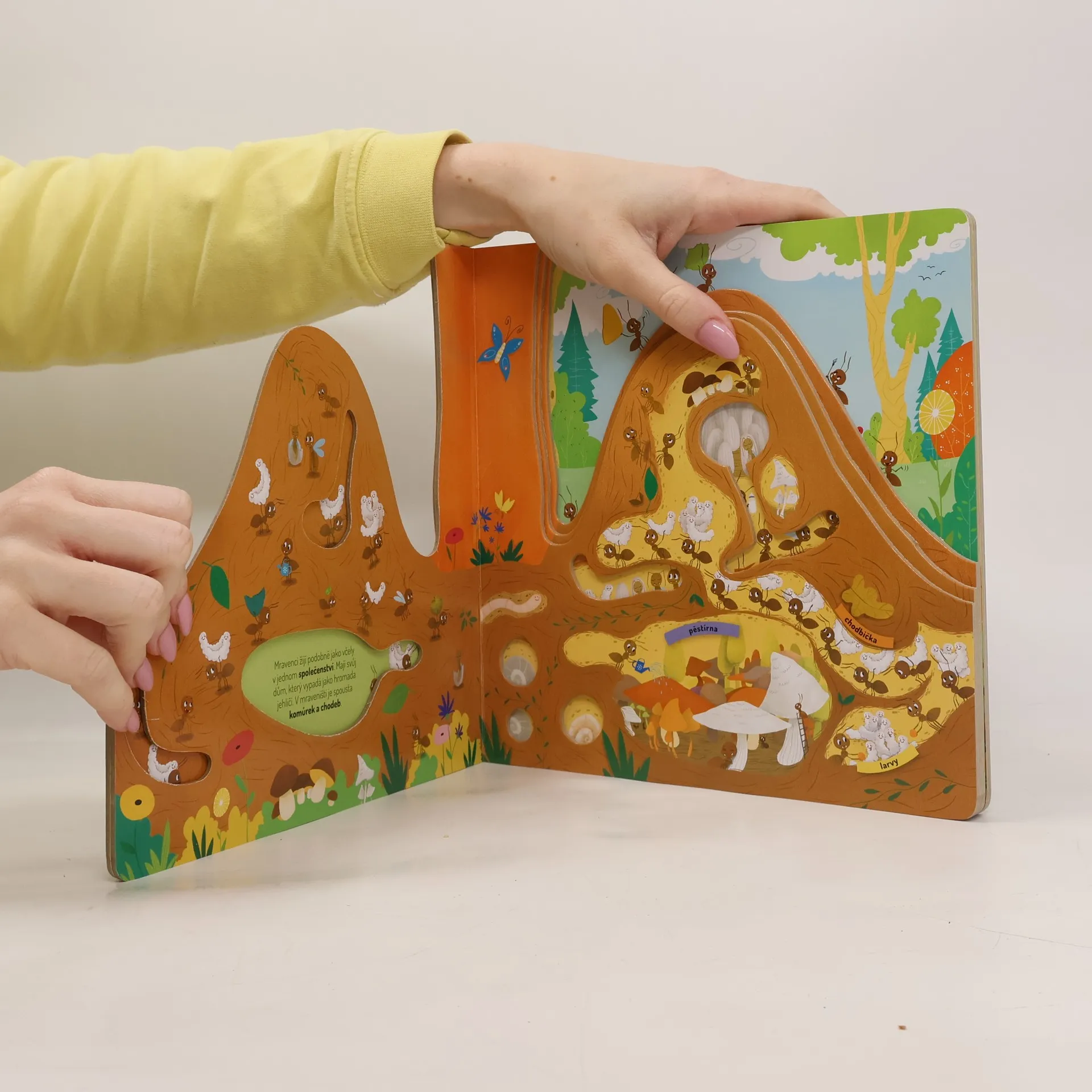 Představ si, že jsi mravenec a strávíš jeden den v mraveništi. Jaké to asi bude? Celý den budeš pořád někam utíkat – uklízet a hloubit chodbičky, hledat různá semínka, abys měl co jíst, a až tě to přestane bavit, vylezeš si úplně nahoru na vršek mravenčí kupy, aby ses opaloval a nahříval si tělíčko. Ale dost už bylo řečí. Víš co? Udělej si pohodlí a pojď se s námi podívat přímo do mraveniště…