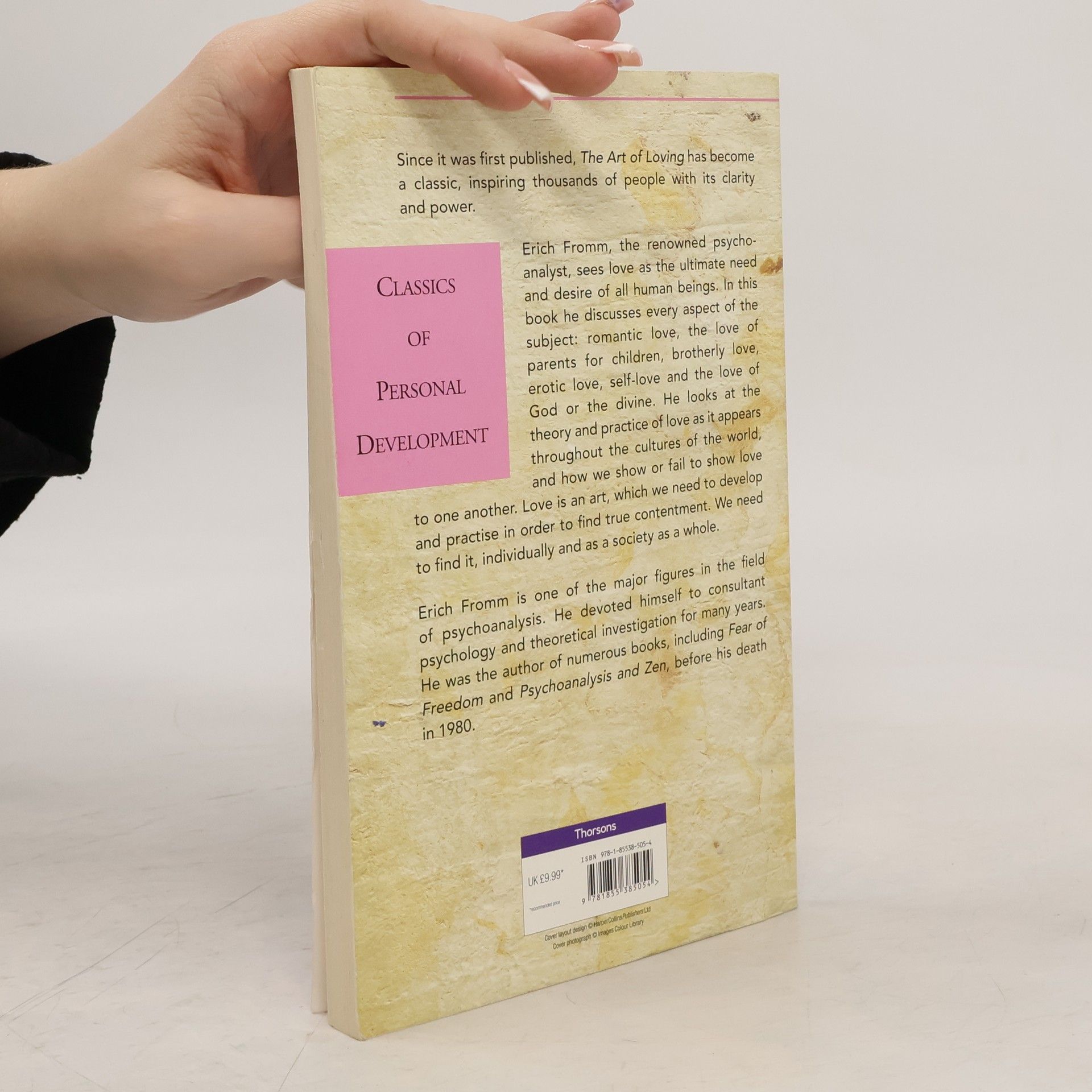 Erich Fromm, the renowned psychoanalyst, sees love as the ultimate need and desire of all human beings. In this book, he discusses various aspects of the subject: romantic love, the love of parents for children, brotherly love, erotic love, self-love and the love of God or the divine.