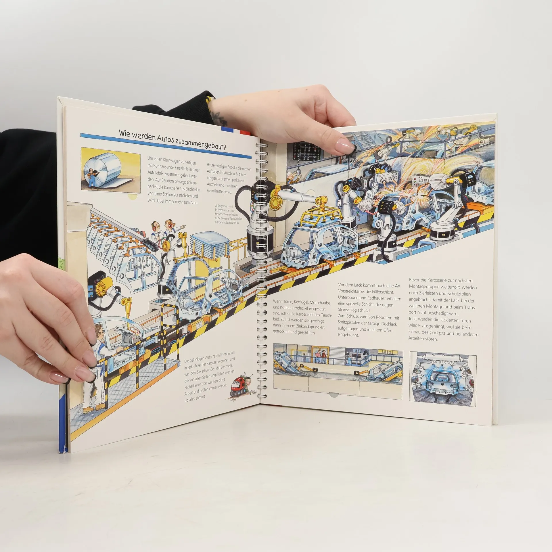 Autos sind ein wichtiger Bestandteil des kindlichen Alltags. Umso spannender ist es, einmal zu sehen, wie ein Auto gebaut wird. Kleine und auch große Autofans haben hier die Gelegenheit, endlich mal einen Blick in die Produktionshalle eines Autoherstellers zu werfen. Vom Entwurf eines neuen Automodells über die vielen Sicherheitstests bis zur „Hochzeit“ - dem Zusammenfügen der Karosserie mit dem Fahrgestell - wird technisch genau und doch spielerisch in Wort und Bild erläutert, wie ein Auto entsteht.