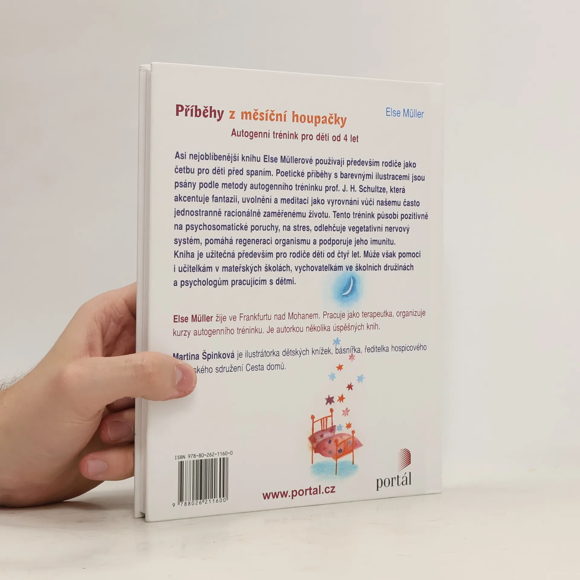 Asi nejoblíbenější knihu Else Müllerové používají především rodiče jako četbu pro děti před spaním. Poetické příběhy s barevnými ilustracemi jsou psány podle metody autogenního tréninku prof. J. H. Schultze, která akcentuje fantazii, uvolnění a meditaci jako vyrovnání vůči našemu často jednostranně racionálně zaměřenému životu. Tento trénink působí pozitivně na psychosomatické poruchy, na stres, odlehčuje vegetativní nerovový systém, pomáhá regeneraci organismu a podporuje jeho imunitu. Kniha je užitečná především pro rodiče dětí od čtyř let. Může však pomoci i učitelkám v mateřských školách, vychovatelkám ve školních družinách a psychologům pracujícím s dětmi. Else Müller žije ve Frankfurtu nad Mohanem. Pracuje jako terapeutka, organizuje kurzy autogenního tréninku. Je autorkou několika úspěšných knih. Martina Špinková je ilustrátorka dětských knížek, básnířka, ředitelka hospicového občanského sdružení Cesta domů.