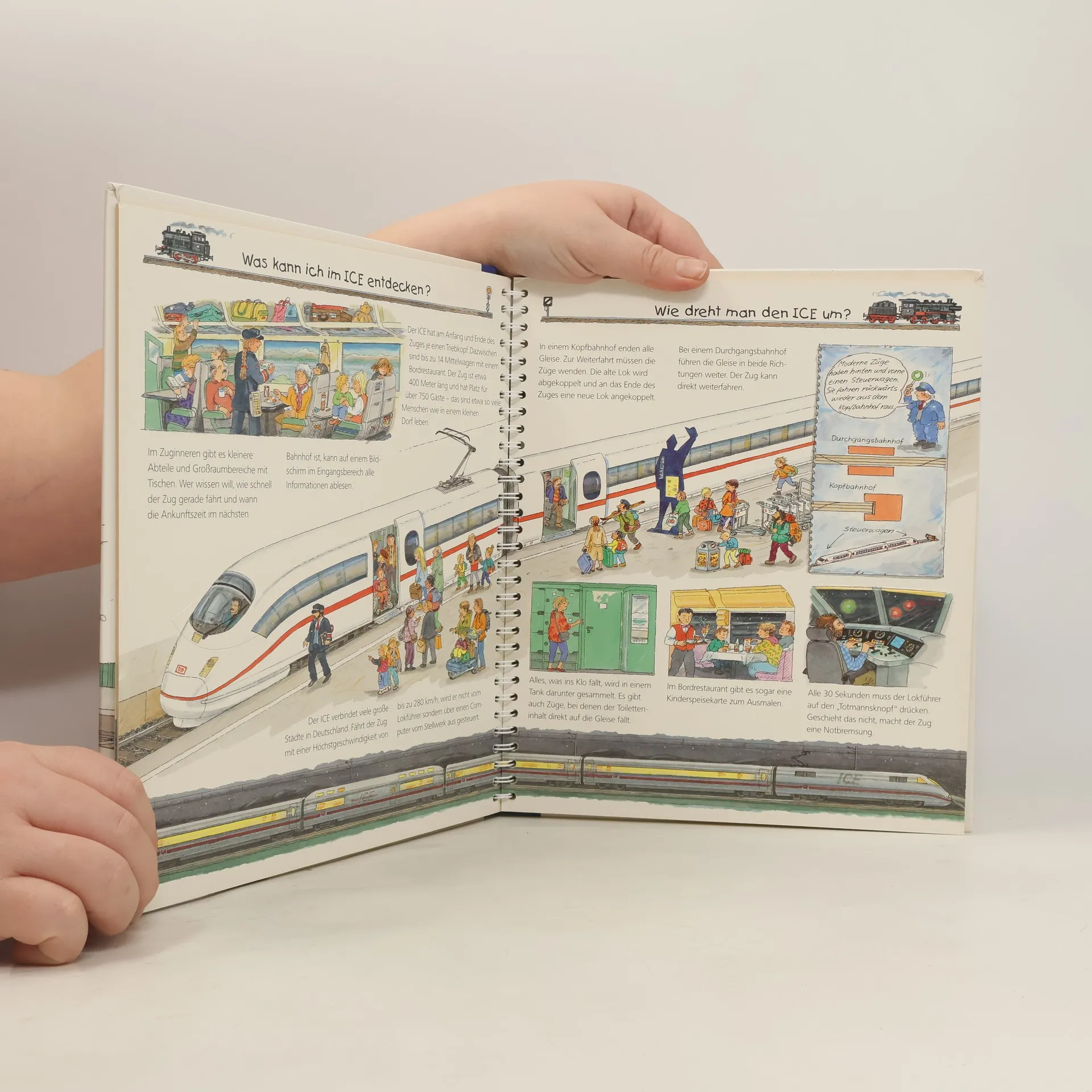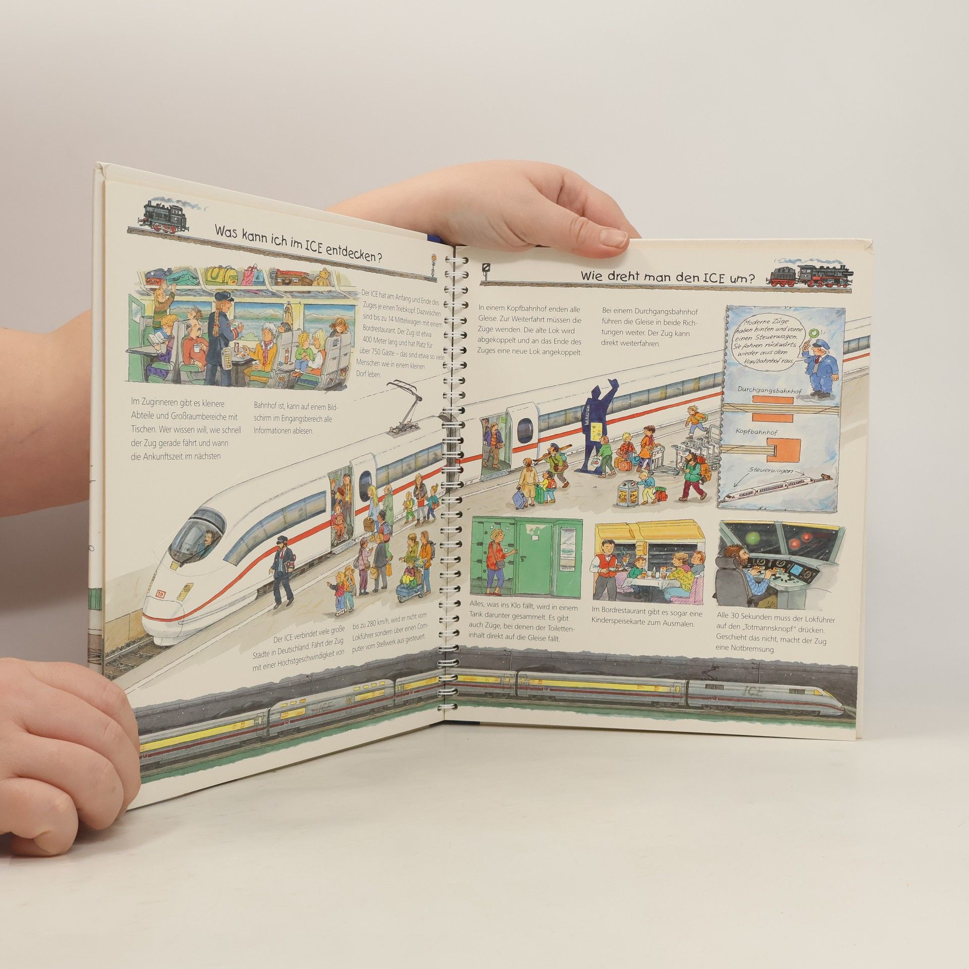 Was gibt es auf dem Bahnhof zu entdecken? Wie sieht es im ICE aus? Detaillierte Bilder und innovative Klappen beantworten alle Fragen von kleinen und großen Eisenbahnfans.