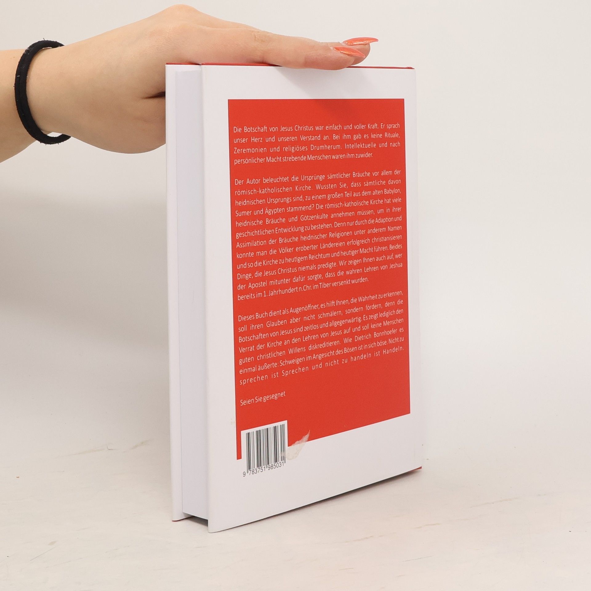 Die Botschaft von Jesus Christus war einfach und voller Kraft. Er sprach unser Herz und unseren Verstand an. Bei ihm gab es keine Rituale, Zeremonien und religiöses Drumherum. Intellektuelle und nach persönlicher Macht strebende Menschen waren ihm zuwider. Der Autor beleuchtet die Ursprünge sämtlicher Bräuche vor allem der römisch-katholischen Kirche. Wussten Sie, dass sämtliche davon heidnischen Ursprungs sind, zu einem großen Teil aus dem alten Babylon und Ägypten stammend. Die römisch-katholische Kirche hat viele heidnische Bräuche und Götzenkulte annehmen müssen, um in ihrer geschichtlichen Entwicklung zu bestehen. Denn nur durch die Adaption und Assimilation der Bräuche heidnischer Religionen unter anderem Namen konnte man die Völker eroberter Ländereien erfolgreich christianisieren und so die Kirche zu heutigem Reichtum und heutiger Macht führen. Beides Dinge, die Jesus Christus niemals predigte. Friedrich Nietzsche formulierte einmal, dass die Kirche exakt das Gegenteil von dem ist, was Jesus gepredigt hat. Dieses Buch dient als Augenöffner, es hilft Ihnen, die Wahrheit zu erkennen, soll ihren Glauben aber nicht schmälern, sondern fördern. Es zeigt lediglich den Verrat der Kirche an den Lehren von Jesus auf und soll keine Menschen guten christlichen Willens diskreditieren. Jedoch ist das Schweigen im Angesicht des Bösen an sich böse. Nicht zu sprechen ist Sprechen und nicht zu handeln ist Handeln.