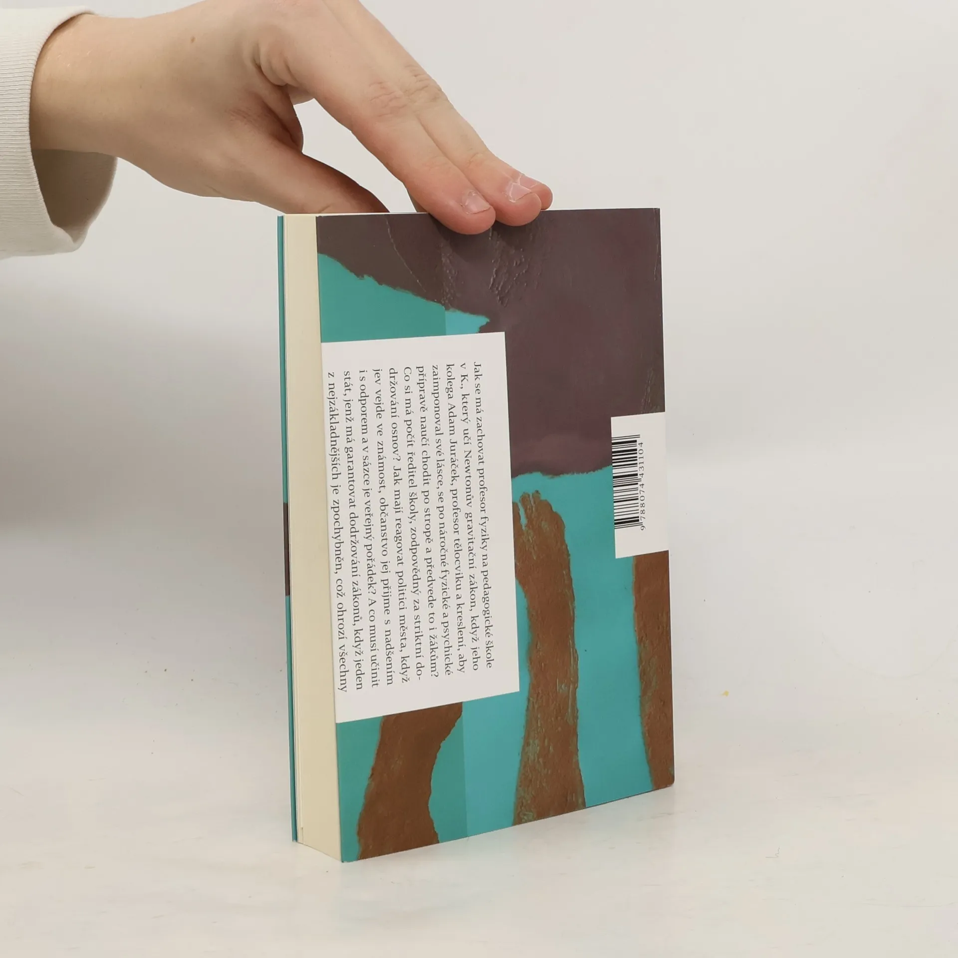 Jak se má zachovat profesor fyziky na pedagogické škole v K., který učí Newtonův gravitační zákon, když jeho kolega Adam Juráček, profesor tělocviku a kreslení, aby zaimponoval své lásce, se po náročné fyzické a psychické přípravě naučí chodit po stropě a předvede to i žákům? Co si má počít ředitel školy, zodpovědný za striktní dodržování osnov? Jak mají reagovat politici města, když jev vejde ve známost, občanstvo jej přijme s nadšením i s odporem a v sázce je veřejný pořádek? A co musí učinit stát, jenž má garantovat dodržování zákonů, když jeden z nejzákladnějších je zpochybněn, což ohrozí všechny ostatní? Situace se vyhrotí, když Juráček hodlá předat svou metodu veřejnosti. Pomůže soudní moc, moderní medicína, anebo? — Druhé próze dramatika Pavla Kohouta z roku 1970, kdy byl na léta umlčen „normalizátory“, čas neuškodil, naopak, pomohl jí dozrát v kultovní dílo se zásadním poselstvím: jak často se geniálním objevitelům stává, že jsou ničeni protivníky i závistníky, pročež se nedočkají doby, kdy jejich objev oblažuje celé lidstvo. Absurdní smyšlenku podpořil autor stejně fiktivními, ale přímo vědecky propracovanými důkazy, které posilují její věrohodnost tak, že se kniha stává pravým požitkem i pro náročného čtenáře.