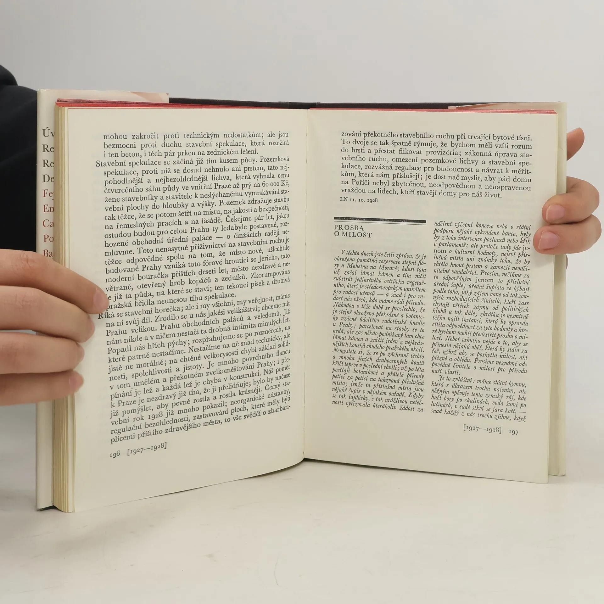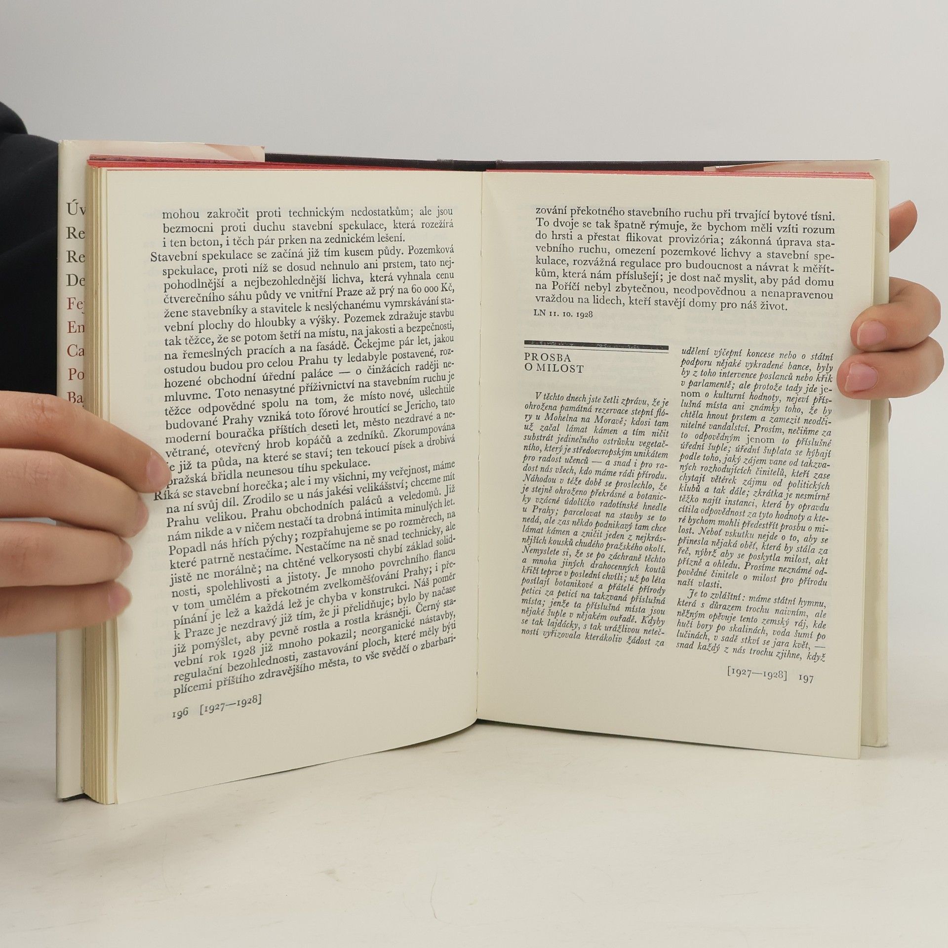 Výběr časopiseckých prací od r. 1917-1938 a článek napsaný v poslední den autorova života. Největší část výboru zabírají fejetony a sloupky, kde je Čapkův výraz nejosobitější. Jde o práce, týkající se nejrůznějších oblastí veřejného, politického i kulturního života. Úvodníky, referáty, reportáže, denní zprávy, povídky, bajky, aforismy, rozhlásky... 2. vydání.