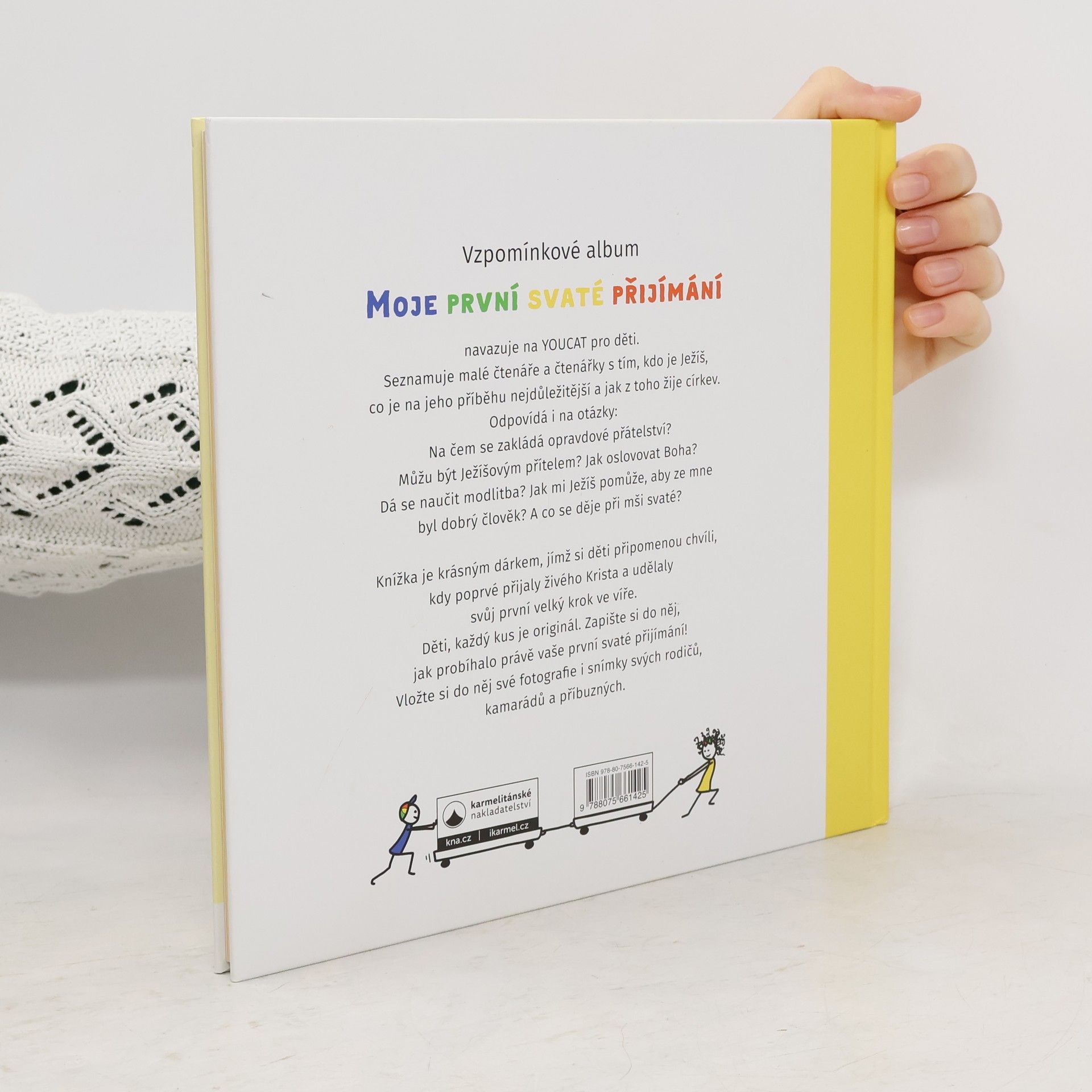 Moje první svaté přijímání navazuje na YOUCAT pro děti. Seznamuje malé čtenáře a čtenářky s tím, kdo je Ježíš, co je na jeho příběhu nejdůležitější a jak z toho žije církev. Odpovídá i na otázky: Na čem se zakládá opravdové přátelství? Můžu být Ježíšovym přítelem? Jak oslovovat Boha? Dá se naučit modlitba? Jak mi Ježíš pomůže, aby ze mne byl dobrý člověk? A co se děje při mši svaté? Knížka je krásným dárkem, jímž si děti připomenou chvíli, kdy poprvé přijaly živého Krista a udělaly svůj první velký krok ve víře. Děti, každý kus je originál. Zapište si do něj, jak probíhalo právě vaše první svaté přijímání! Vložte si do něj své fotografie i snímky svých rodičů, kamarádů a příbuzných.