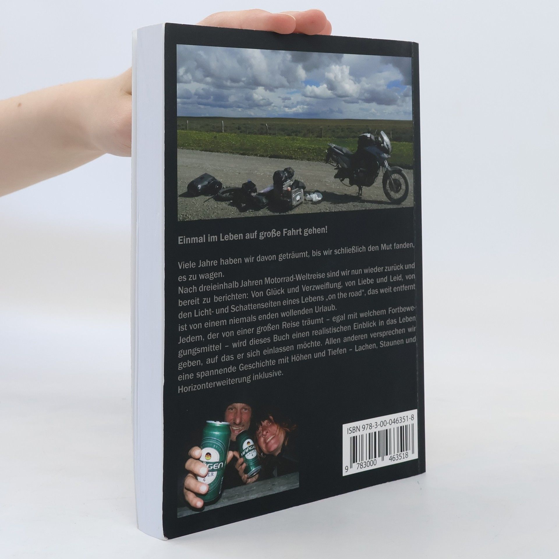 Viele Jahre haben Simone und Frank davon geträumt, bis sie schließlich den Mut fanden, es zu wagen.Nach dreieinhalb Jahren Motorrad-Weltreise sind sie nun wieder zurück und bereit zu berichten:Von Glück und Verzweiflung, von Liebe und Leid, von den Licht- und Schattenseiten eines Lebens "on the road", das weit entfernt ist von einem niemals enden wollenden Urlaub.Jedem, der von einer großen Reise träumt - egal mit welchem Fortbewegungsmittel - wird dieses Buch einen realistischen Einblick in das Leben geben, auf das er sich einlassen möchte.Allen anderen bietet es eine spannende Geschichte mit Höhen und Tiefen - Lachen, Staunen und Horizonterweiterung inklusive.Einmal um die Welt: 2 Menschen, 2 Motorräder, 1 Zelt, 183.475 km und unzählige Anekdoten, Abenteuer und Begegnungen, die oft mit einem zwinkernden Auge erzählt werden. Außer der authentischen Reisegeschichte bietet das Buch einen umfassenden und anschaulichen Einblick in die Höhen und Tiefen des Dauerreiselebens mit all seinen Facetten.