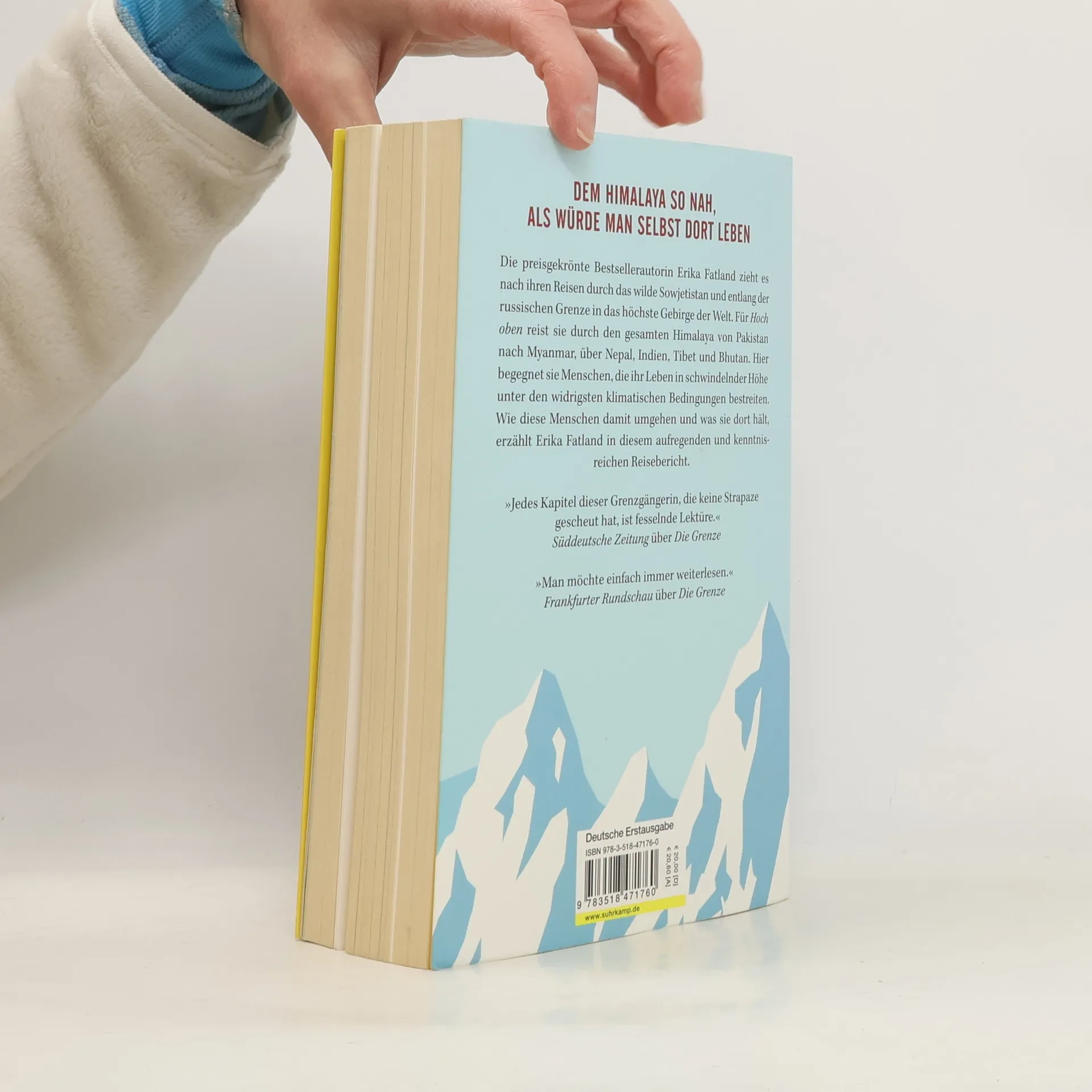 Die preisgekrönte Bestsellerautorin Erika Fatland zieht es nach ihren Reisen durch das wilde Sowjetistan nun in das höchste Gebirge der Welt. Für Hoch oben reiste sie durch den gesamten Himalaya – durch Pakistan, Nepal, Indien, Tibet und Bhutan. Hier begegnet sie Menschen, die in schwindelnder Höhe unter widrigsten klimatischen Bedingungen leben. Erika Fatland erzählt in diesem aufregenden und kenntnisreichen Reisebericht, wie diese Menschen mit ihrer Lebenssituation umgehen und was sie dort hält. Sie nimmt uns mit auf eine atemberaubende Reise in eine der ethnisch vielfältigsten und politisch konfliktreichsten Regionen der Welt, wo Islam, Buddhismus und Hinduismus auf uralte schamanische Traditionen treffen. Supermächte konkurrieren um Einfluss, während moderne Lebensweisen mit Tradition und der gewaltigen Landschaft kollidieren. Fatland interessiert sich nicht für spirituelle Erleuchtung, sondern für die Menschen, mit denen sie in Kontakt tritt, und wie sie unter extremen Bedingungen überleben. Besonders Einblicke in das Leben der Frauen, die in sehr traditionellen Gesellschaften oft ungehört bleiben, stehen im Mittelpunkt. Ihre Reise endet mit einem Besuch beim Volk der Mosuo, dem „Königreich der Frauen“.