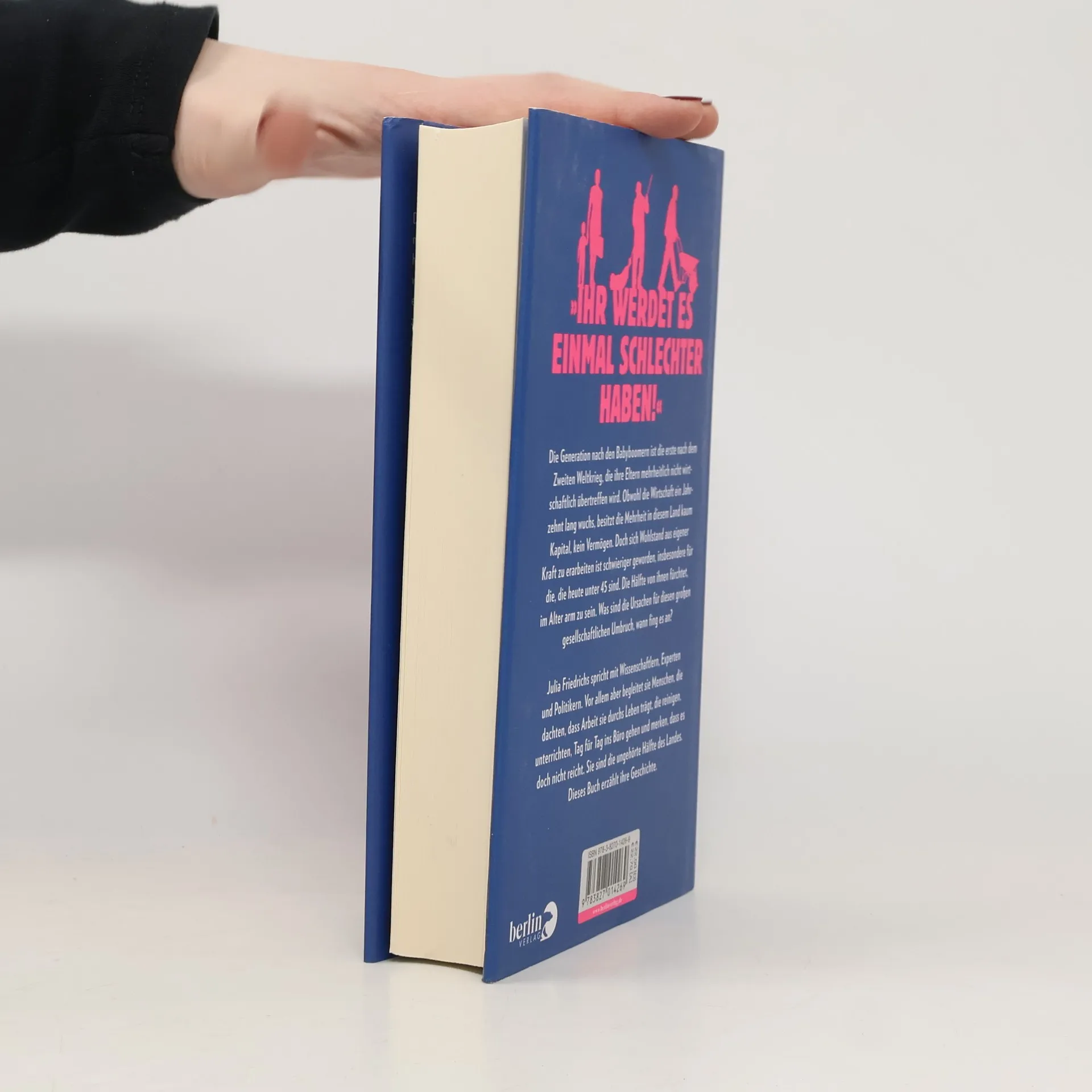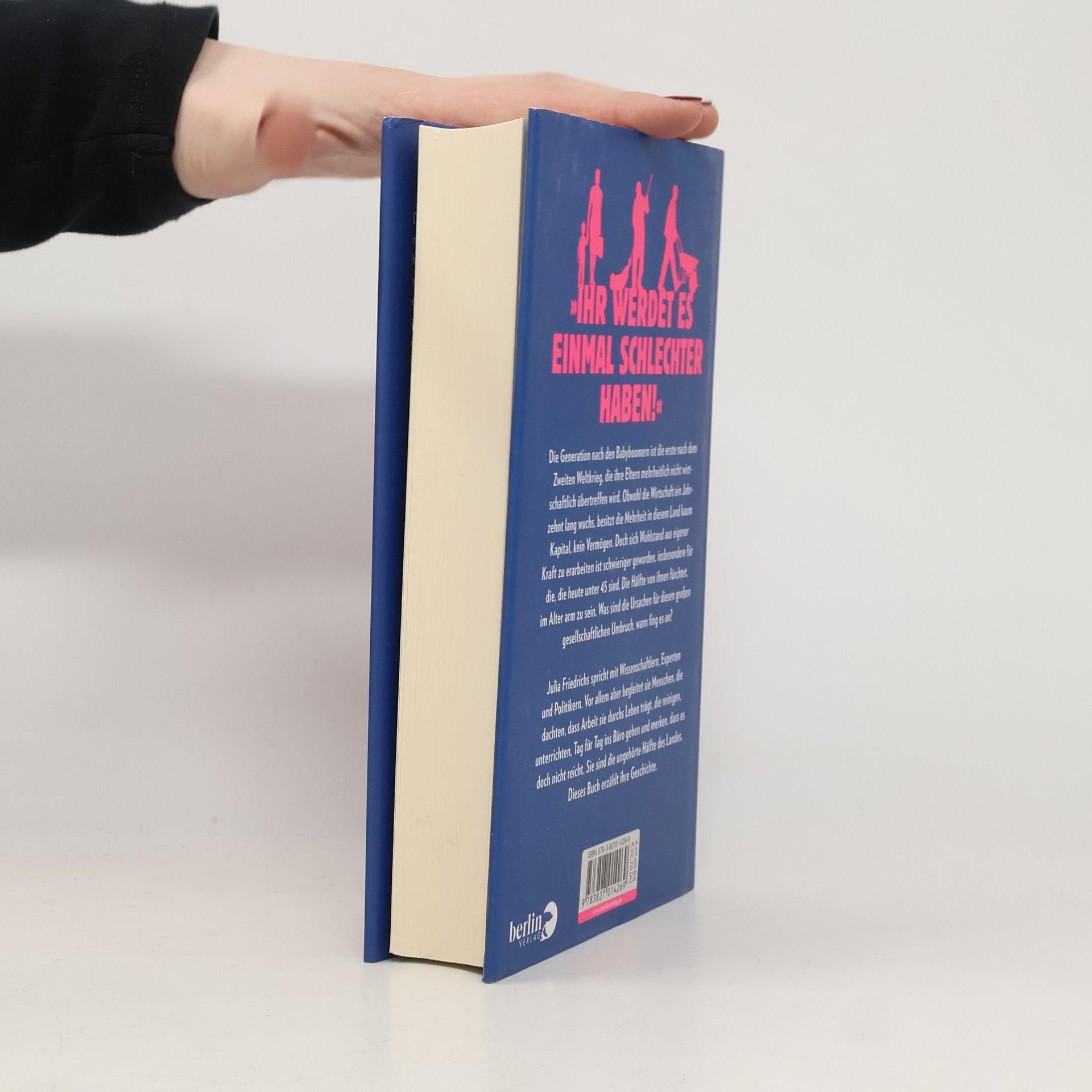 Die Generation nach den Babyboomern ist die erste nach dem Zweiten Weltkrieg, die ihre Eltern mehrheitlich nicht wirtschaftlich übertreffen wird. Obwohl die Wirtschaft ein Jahrzehnt lang wuchs, besitzt die Mehrheit in diesem Land kaum Kapital, kein Vermögen. Doch sich Wohlstand aus eigener Kraft zu erarbeiten ist schwieriger geworden, insbesondere für die, die heute unter 45 sind. Die Hälfte von ihnen fürchtet, im Alter arm zu sein. Was sind die Ursachen für diesen großen gesellschaftlichen Umbruch, wann fing es an? Julia Friedrichs spricht mit Wissenschaftlern, Experten und Politikern. Vor allem aber begleitet sie Menschen, die dachten, dass Arbeit sie durchs Leben trägt, die reinigen, unterrichten, Tag für Tag ins Büro gehen und merken, dass es doch nicht reicht. Sie sind die ungehörte Hälfte des Landes. Dieses Buch erzählt ihre Geschichte