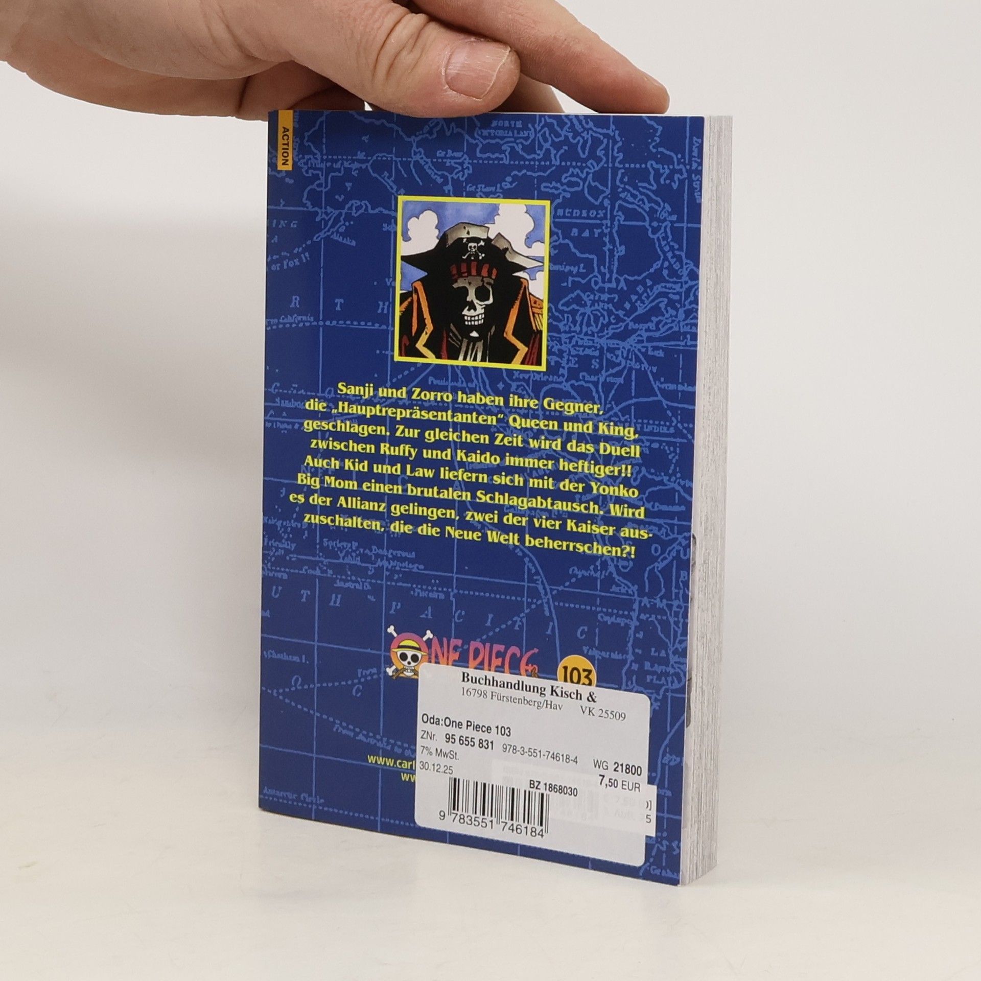 Der beliebteste Manga der Welt! Erlebe die Geschichte des zukünftigen Königs der Piraten in einer unvergleichlichen Geschichte voller Action, Abenteuer, Dramatik, Freundschaft und Humor. Mit fast 500 Millionen verkauften Bänden weltweit ist One Piece die meistverkaufte Mangaserie der Geschichte! Sanji und Zorro haben ihre Gegner, die „Hauptrepräsentanten“ Queen und King, geschlagen. Zur gleichen Zeit wird das Duell zwischen Ruffy und Kaido immer heftiger!! Auch Kid und Law liefern sich mit der Yonko Big Mom einen brutalen Schlagabtausch. Wird es der Allianz gelingen, zwei der vier Kaiser auszuschalten, die die Neue Welt beherrschen?! Für Fans von Naruto, Dragon Ball, My Hero Academia und Fairy Tail!