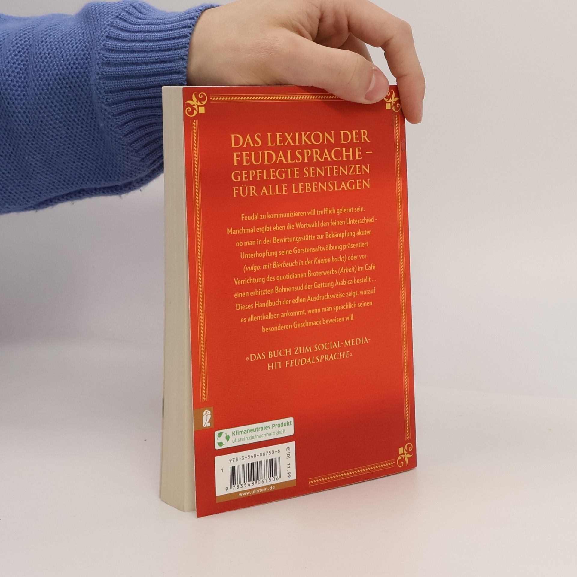 Das Lexikon der Feudalsprache - gepflegte Sentenzen für alle Lebenslagen Feudal zu kommunizieren will trefflich gelernt sein. Manchmal ergibt eben die Wortwahl den feinen Unterschied – ob man in der Bewirtungsstätte zur Bekämpfung akuter Unterhopfung seine Gerstensaftwölbung präsentiert (vulgo: mit Bierbauch in der Kneipe hockt) oder vor Verrichtung des quotidianen Broterwerbs (Arbeit) im Café einen erhitzten Bohnensud der Gattung Arabica bestellt … Dieses Handbuch der edlen Ausdruckweise zeigt, worauf es allenthalben ankommt, wenn man sprachlich seinen besonderen Geschmack beweisen will. »Fühlet Euch willkommen auf dieser feudalen Sozialplattform voller amüsanter Unterhaltungsdarbietungen!« The Best Social Media über den Instagram-Account Feudalsprache