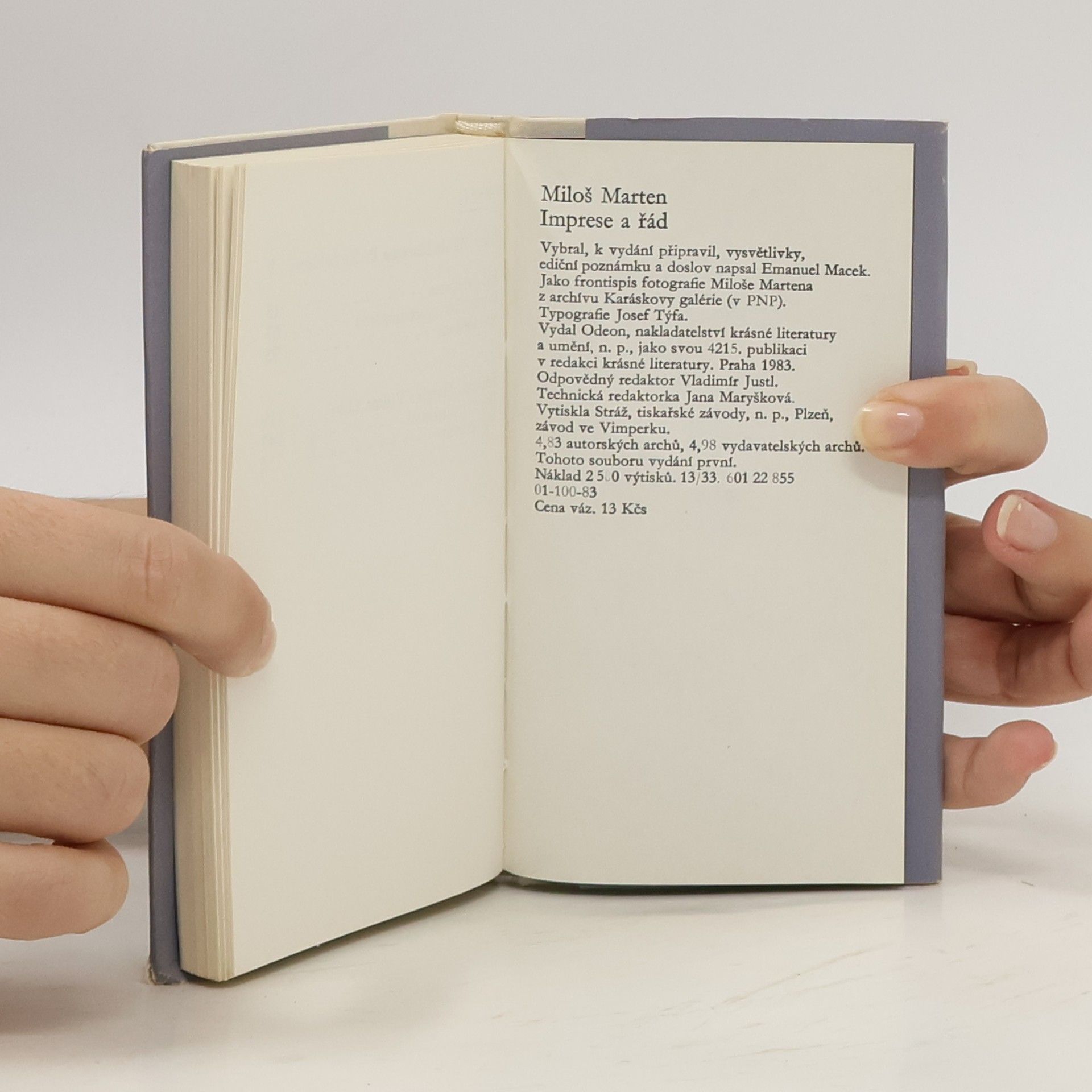 Výbor z díla Miloše Martena. Vychází v roce 100. výročí narození. Vybral, k vyd. připravil, vysvětl., ediční pozn. a doslov napsal Emanuel Macek.