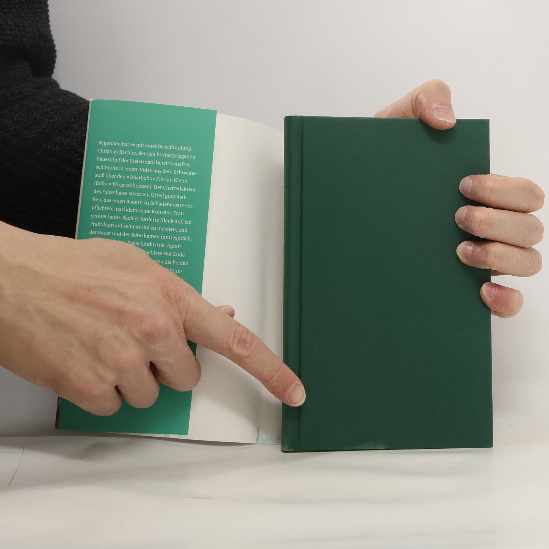 „Wahrheit aufdecken und damit die Realität verbessern: bei großen Staatsaffären und auch bei den Nöten eines kleinen Bauern. Dass Klenk das Kleine nicht zu klein ist, macht ihn groß.“ Robert Menasse Begonnen hat es mit einer Beschimpfung. Christian Bachler, der den höchstgelegenen Bauernhof der Steiermark bewirtschaftet, schimpfte in einem Video aus dem Schweinestall über den „Oberbobo“ Florian Klenk (Bobo = Ökospießer). Der Chefredakteur des Falter hatte zuvor ein Urteil gutgeheißen, das einen Bauern zu Schadenersatz verpflichtete, nachdem seine Kuh eine Frau getötet hatte. Bachler forderte Klenk auf, ein Praktikum auf seinem Hof zu machen, und der Bauer und der Bobo kamen ins Gespräch: über Klimawandel, Fleischindustrie, Agrarpolitik und Banken. Als Bachlers Hof Ende 2020 vor dem Ruin stand, fanden die beiden Freunde aus zwei Welten binnen 48 Stunden 12.829 Spender, die bereit waren, zu helfen. Warum es sich lohnt, mit Leuten zu reden, deren Meinung man nicht teilt.
