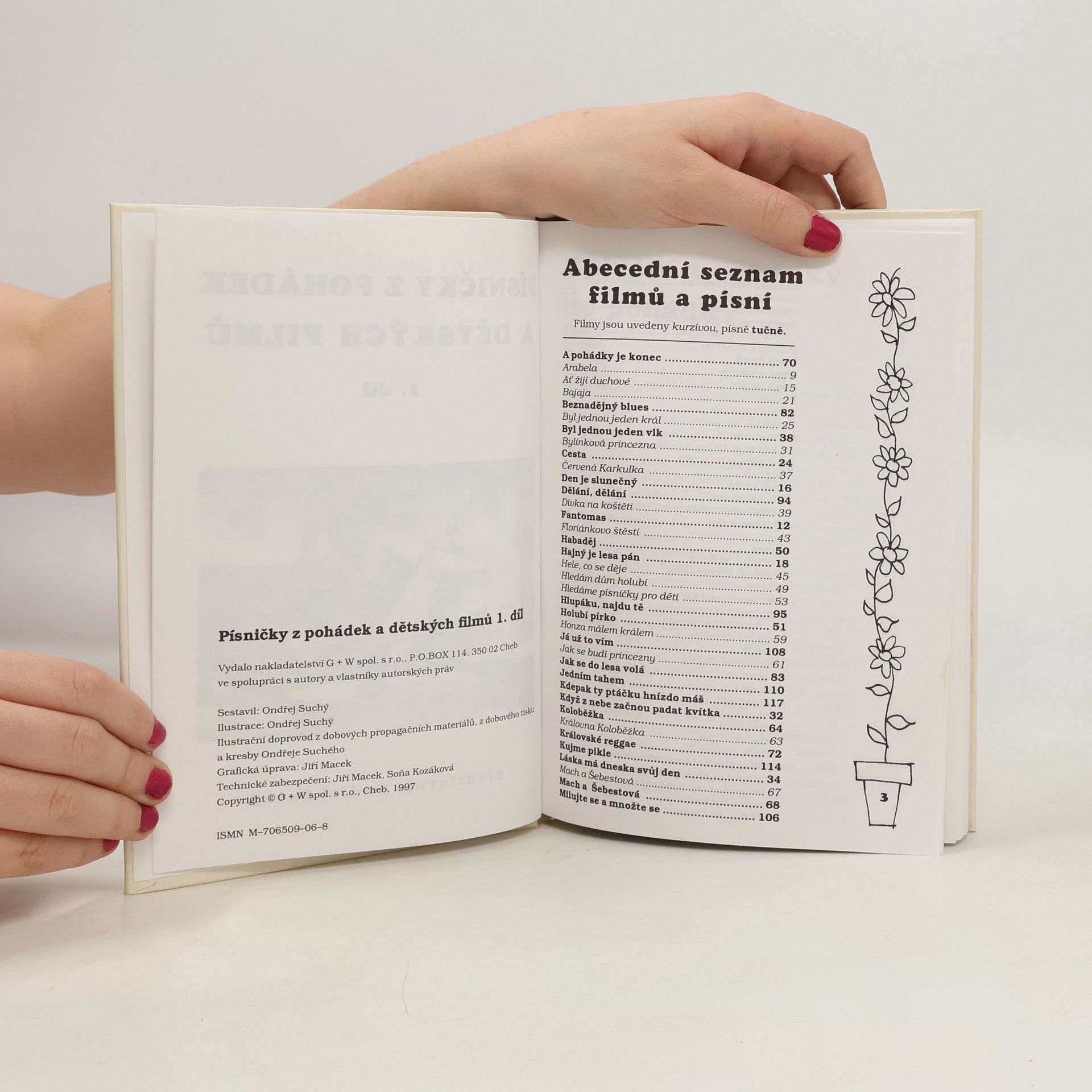 Ondřej Suchý představuje výběr nejpopulárnějších písniček z pohádkových filmů a z televizní obrazovky. Písničky jsou opatřeny textem, melodickou linkou a číslovaným akordickým doprovodem. Knížku doplňují černobílé fotografie, krátké komentáře a ilustrace Ondřeje Suchého.