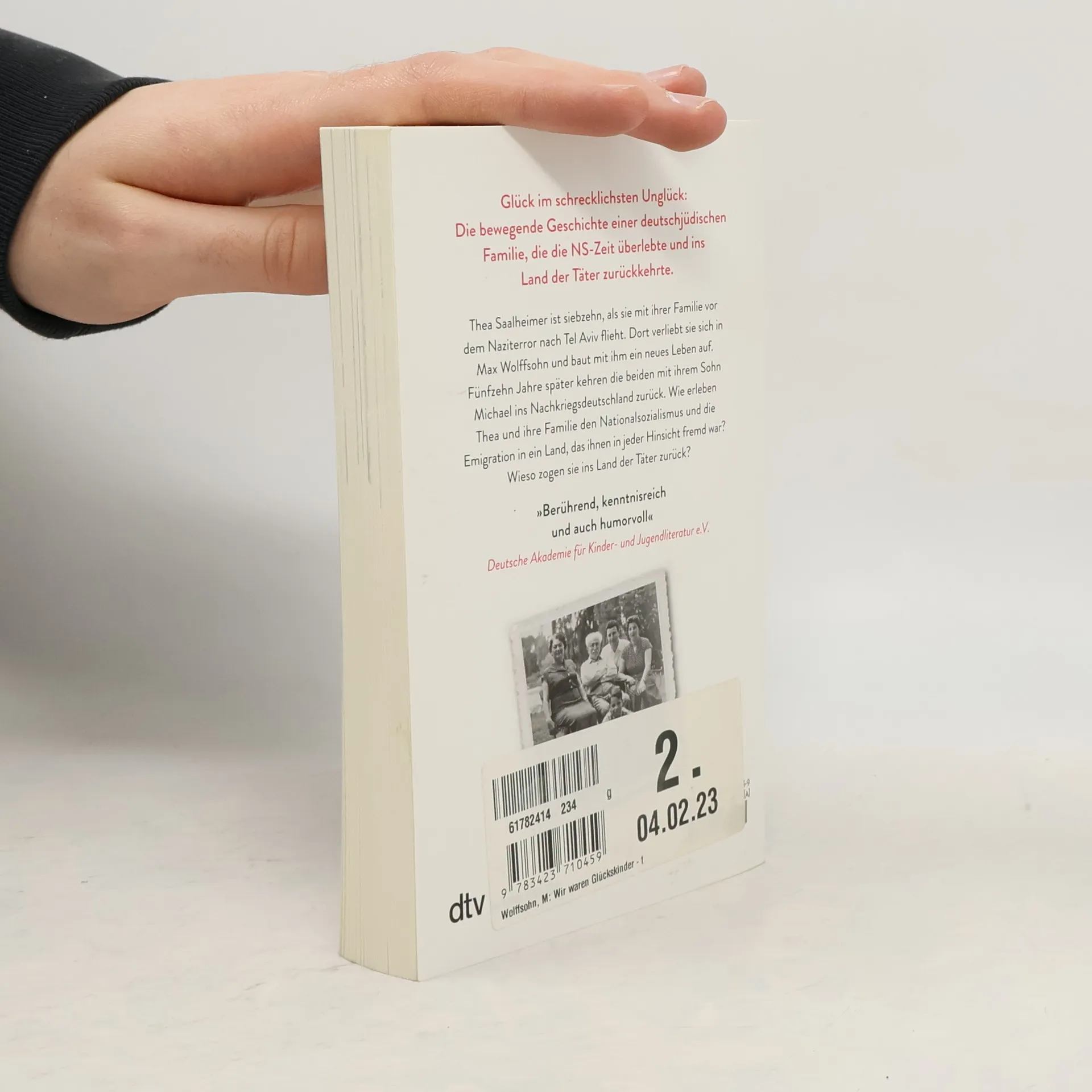 Einmal Tel Aviv und zurück: die Geschichte einer Emigration Thea Saalheimer war siebzehn, als sie Anfang 1939 vor dem Naziterror nach Tel Aviv floh, wo sie sich in Max Wolffsohn verliebte. Fünfzehn Jahre später kehrten die beiden mit ihrem damals siebenjährigen Sohn Michael nach Deutschland zurück. Wie erlebten Thea und ihre Familie den Nationalsozialismus und die Emigration – in ein Land, das ihnen in jeder Hinsicht fremd war? Wieso zogen sie ins Land der Täter zurück? Die Geschichte seiner Mutter und die seiner Kindheit erzählt der Historiker und Nahostexperte Michael Wolffsohn unterhaltsam, voll erzählerischer Kraft und mit vielen Fakten über den Nationalsozialismus und die Geschichte der Juden.