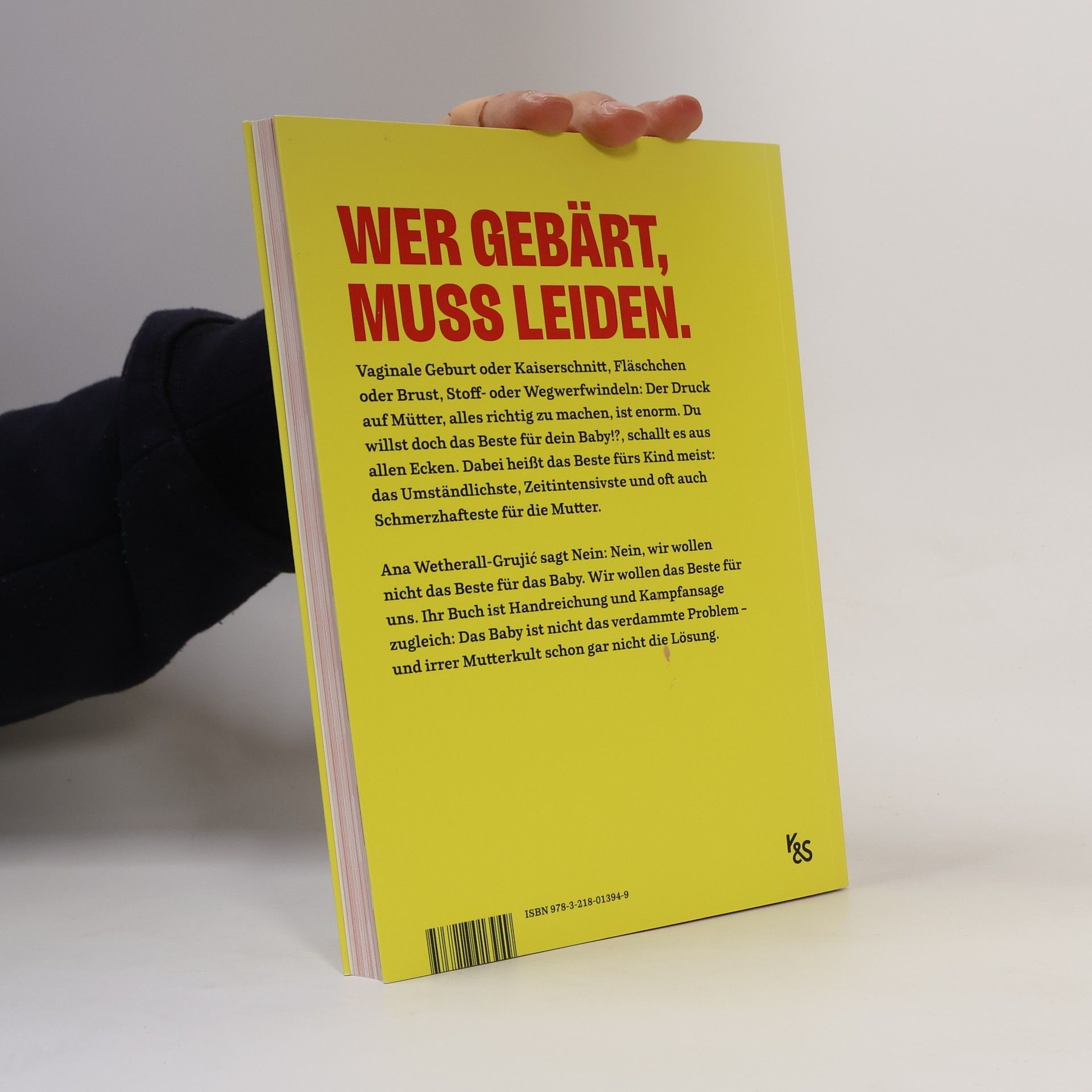 Wer gebärt, muss leiden. Die frischgebackene Mutter Ana Wetherall-Grujić hat die Faxen dicke: Sie zeigt auf, wie unsere Gesellschaft Gebärende im Regen stehen lässt – und ihnen dann noch ans Knie pisst. Vaginale Geburt oder Kaiserschnitt, Fläschchen oder Brust, Stoff- oder Wegwerfwindeln: Der Druck auf Mütter, alles richtig zu machen, ist enorm. Du willst doch das Beste für dein Baby!?, schalmeit es aus allen Ecken. Dabei heißt das Beste fürs Kind meist: das Umständlichste, Zeitintensivste und oft auch Schmerzhafteste für die Mutter. Ana Wetherall-Grujić sagt Nein: Nein, wir wollen nicht das Beste für das Baby. Wir wollen das Beste für uns. Ihr Buch ist Handreichung und Kampfansage zugleich: Das Baby ist nicht das verdammte Problem – und irrer Mutterkult schon gar nicht die Lösung.