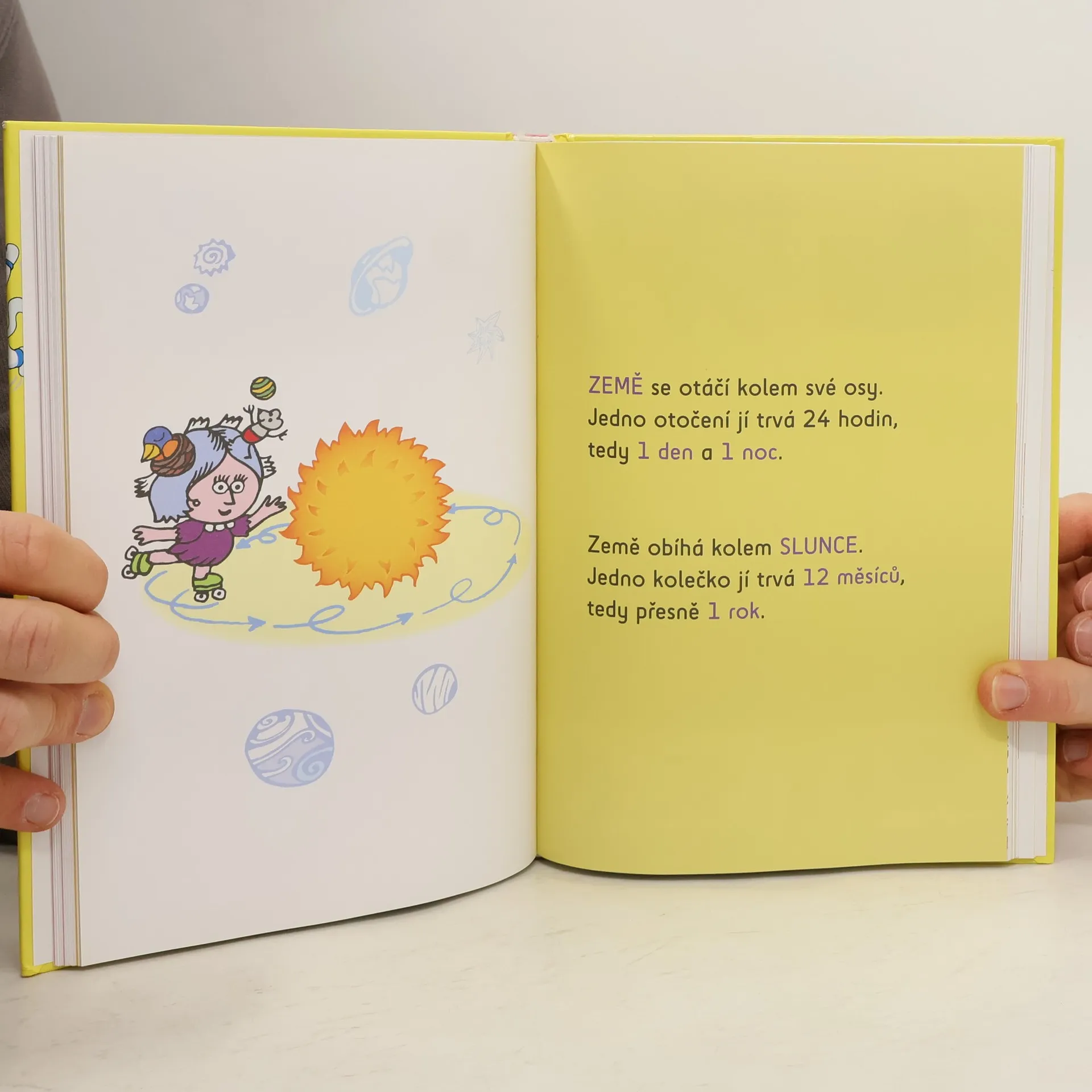 Planety, vesmírná tělesa, roční období, krajiny světy, přírodní jevy, rostliny a zvířata z celého světa, lidské tělo. Světadíly a jejich obyvatelé, mapy, slavné stavby, pozdravy v různých světových jazycích. Hravé úkoly, vybarvování, spojování, luštění, doplňování...